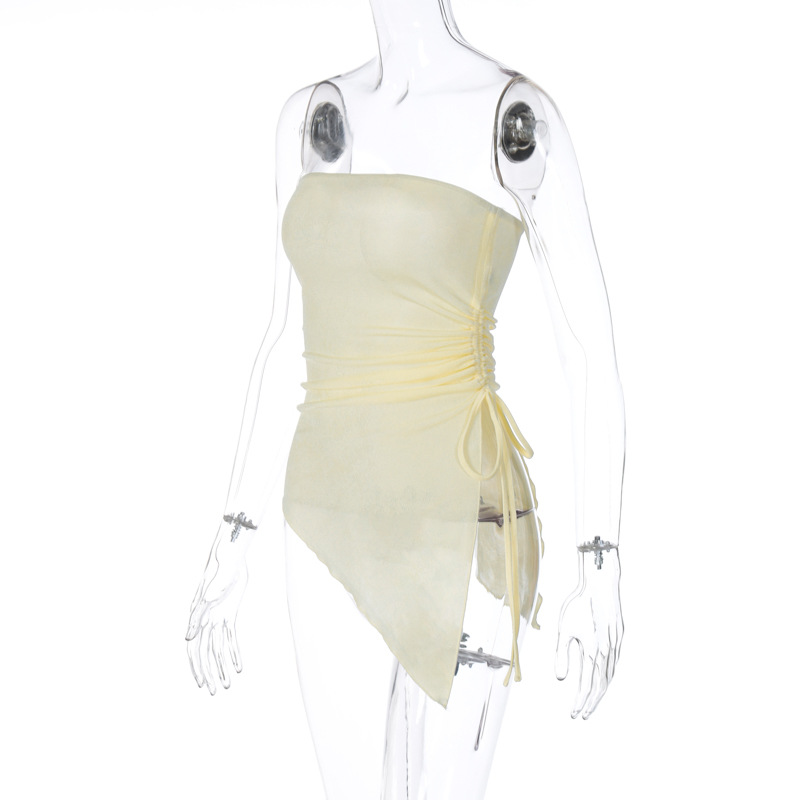 Haut slim uni à plis et coutures biseautées, enveloppant la poitrine