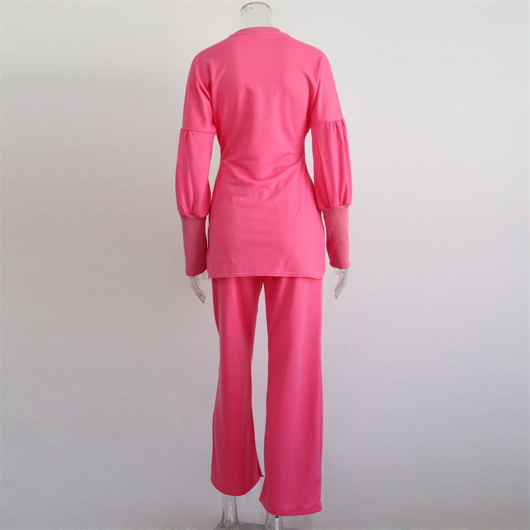 Ensemble sweat à capuche de couleur unie et pull à col rond