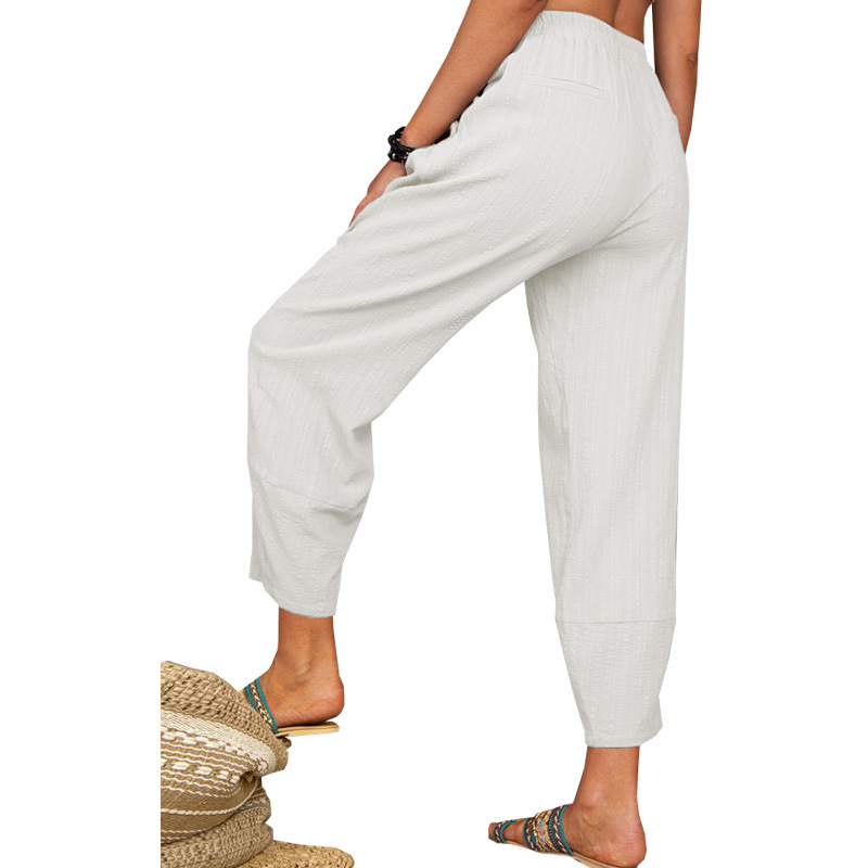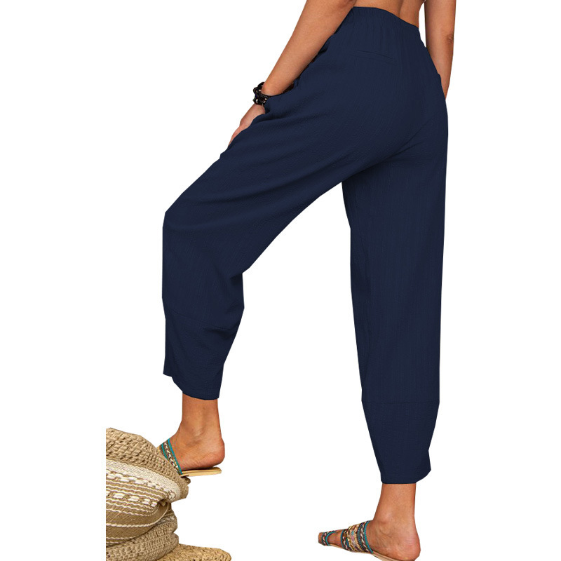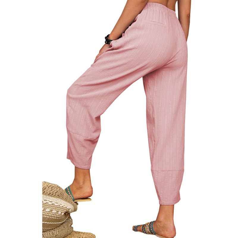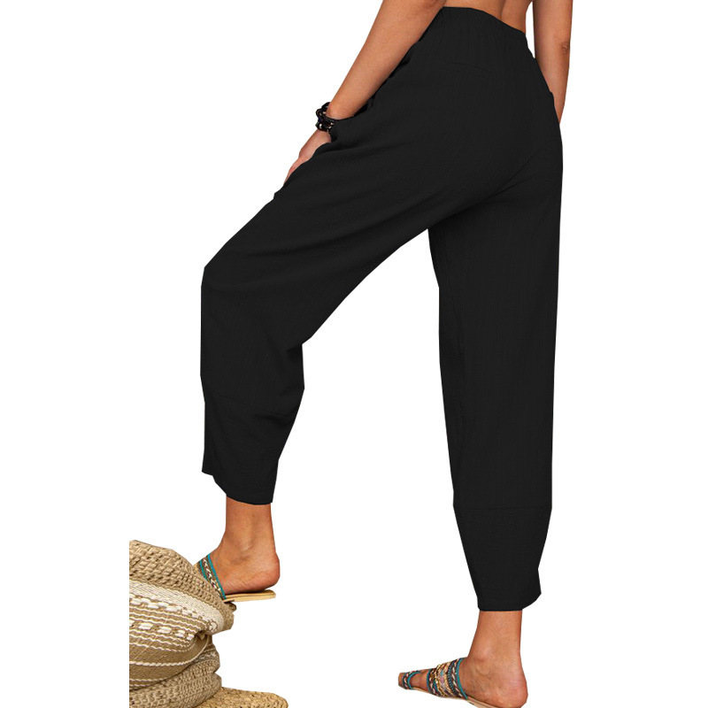 Pantalon décontracté en coton et lin de couleur unie, ample, sarouel pour la maison
