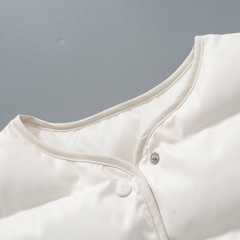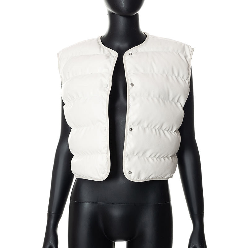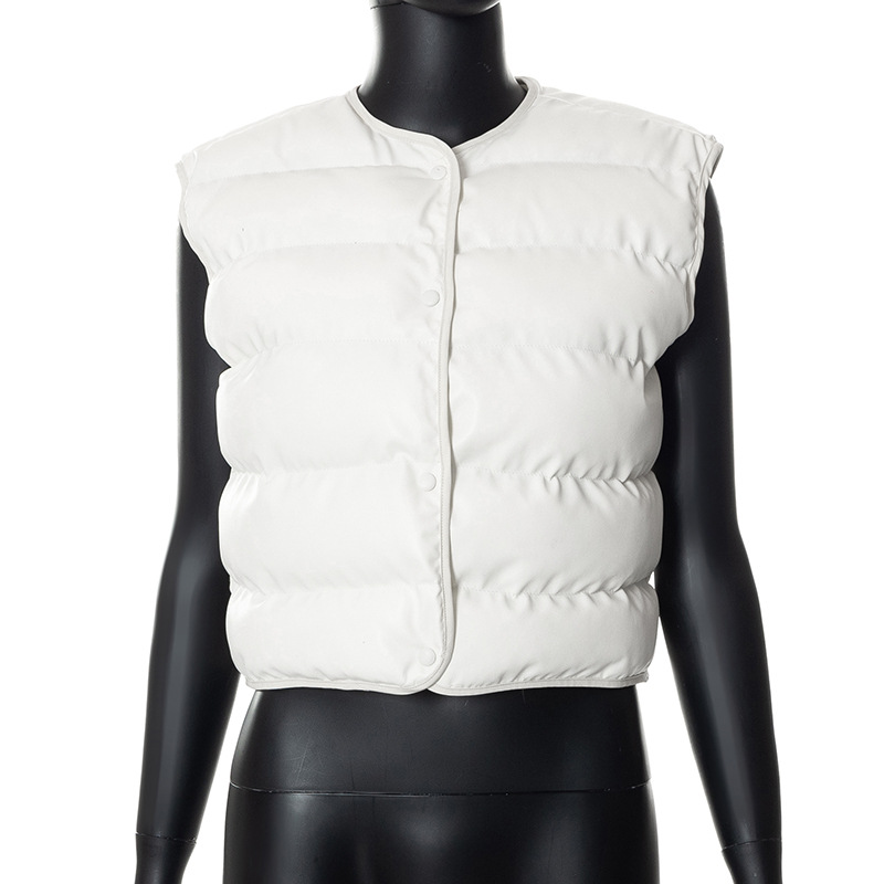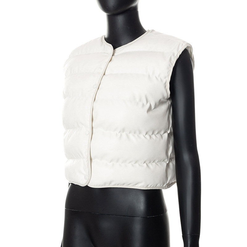 Gilet rembourré en coton à col rond et boutons-pression, couleur unie, slim, sans manches