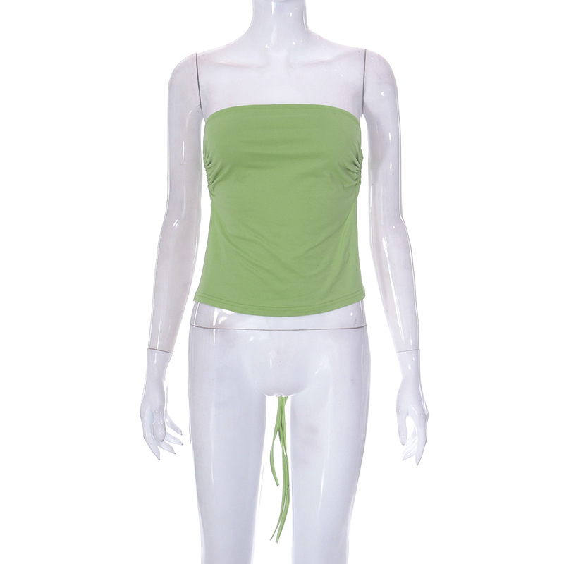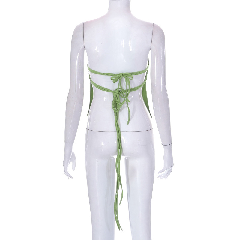 Haut tube uni à nouer, dos nu, cache-cœur, coupe slim, sous-vêtement court