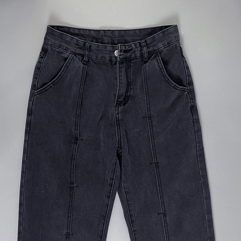 Jean droit fendu dégradé Pantalon taille haute rétro classique