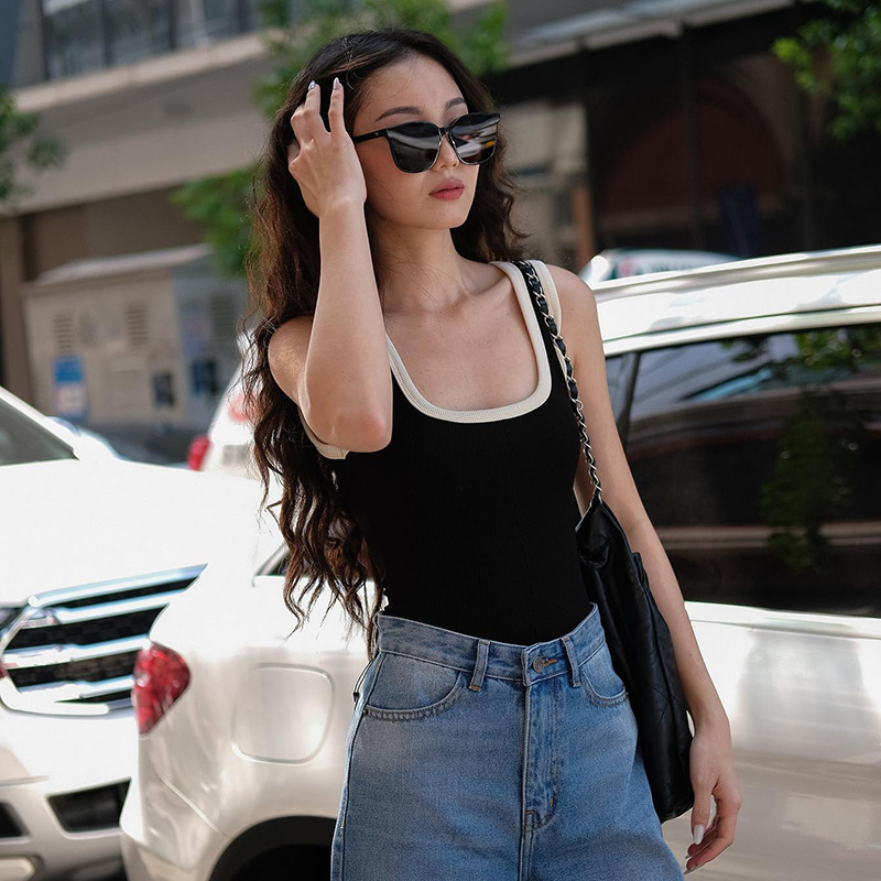 Combinaison gilet à rayures contrastées et coupe slim décontractée et assortie