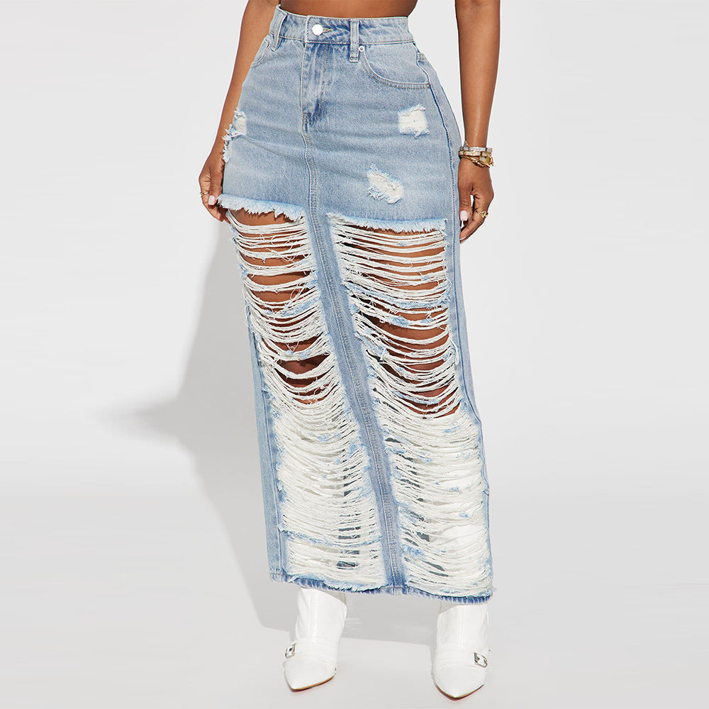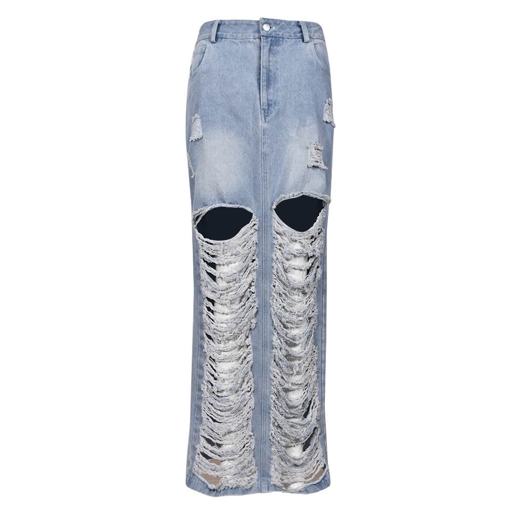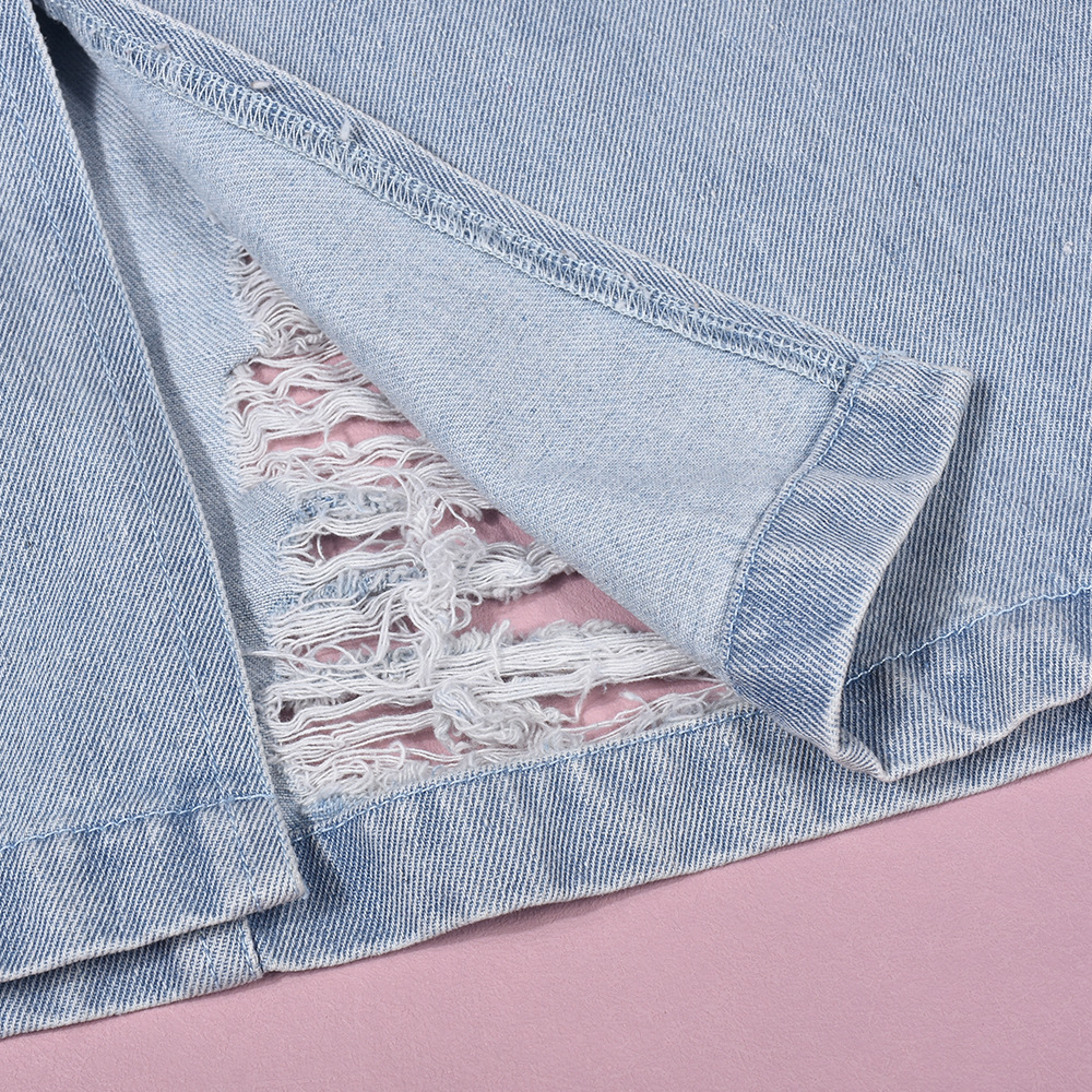 Jupe à franges fendue en denim délavé personnalisé, produit haut de gamme streetwear