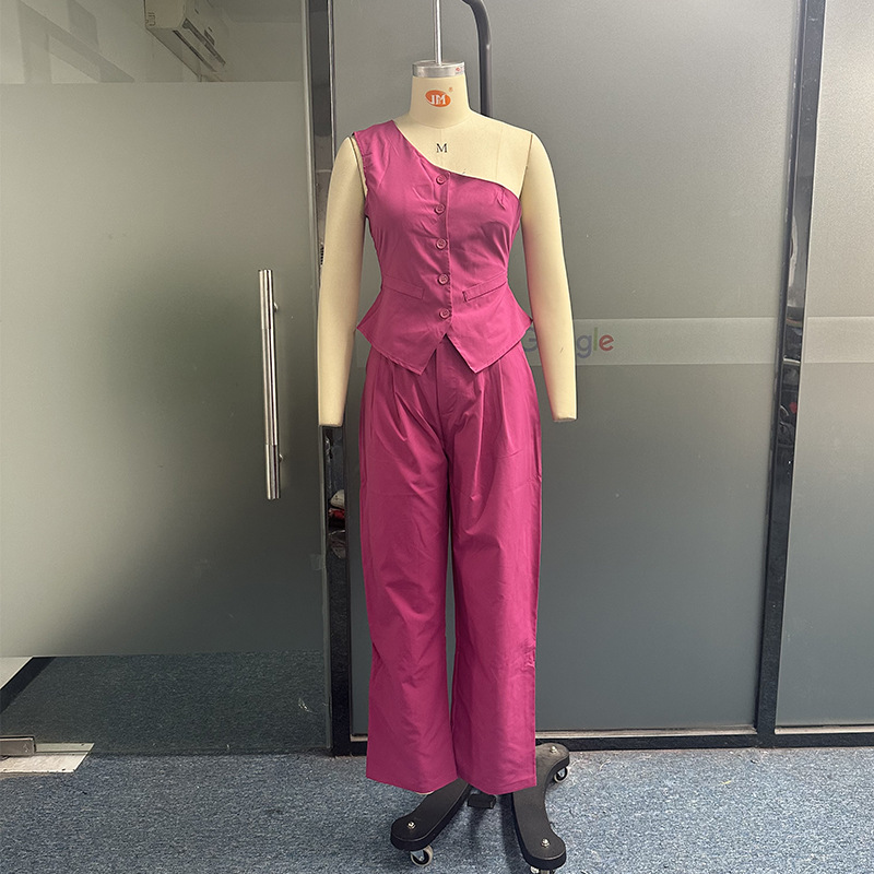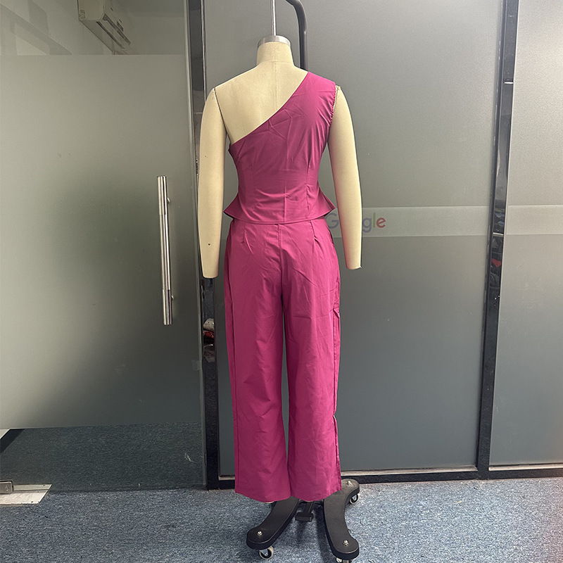 Ensemble deux pièces décontracté avec pantalon ample et une épaule