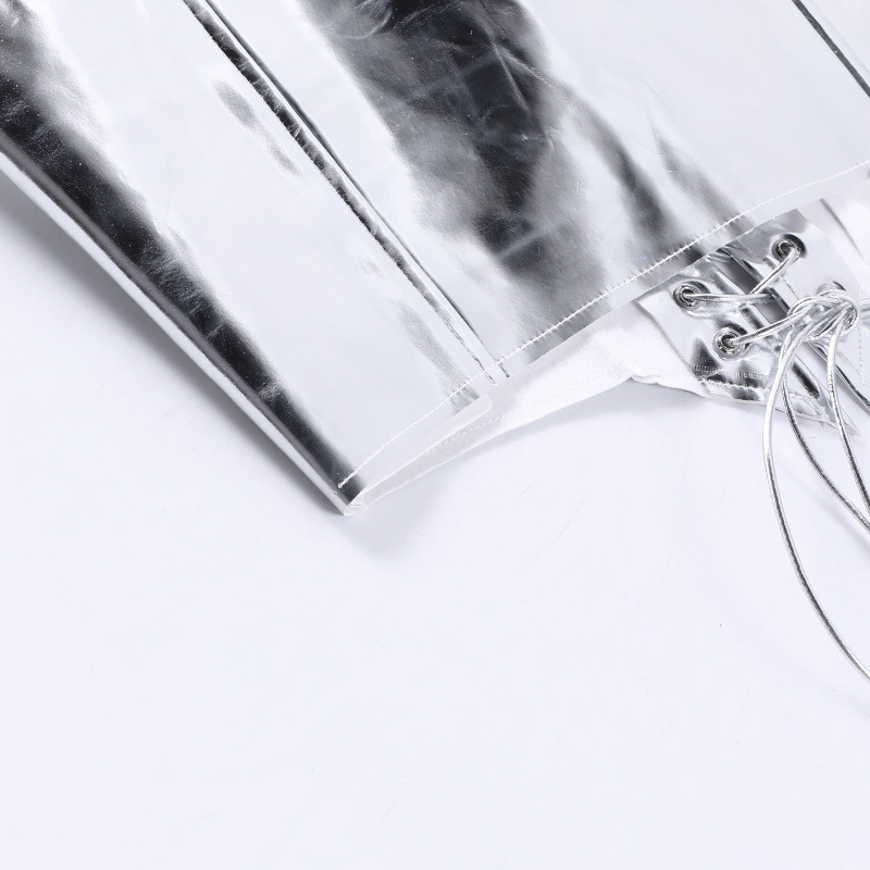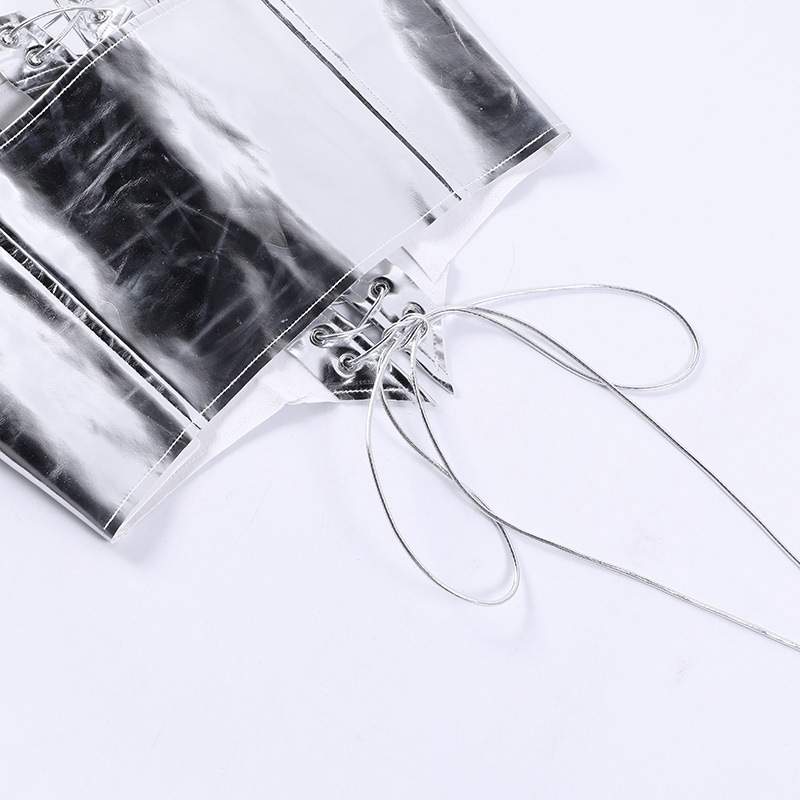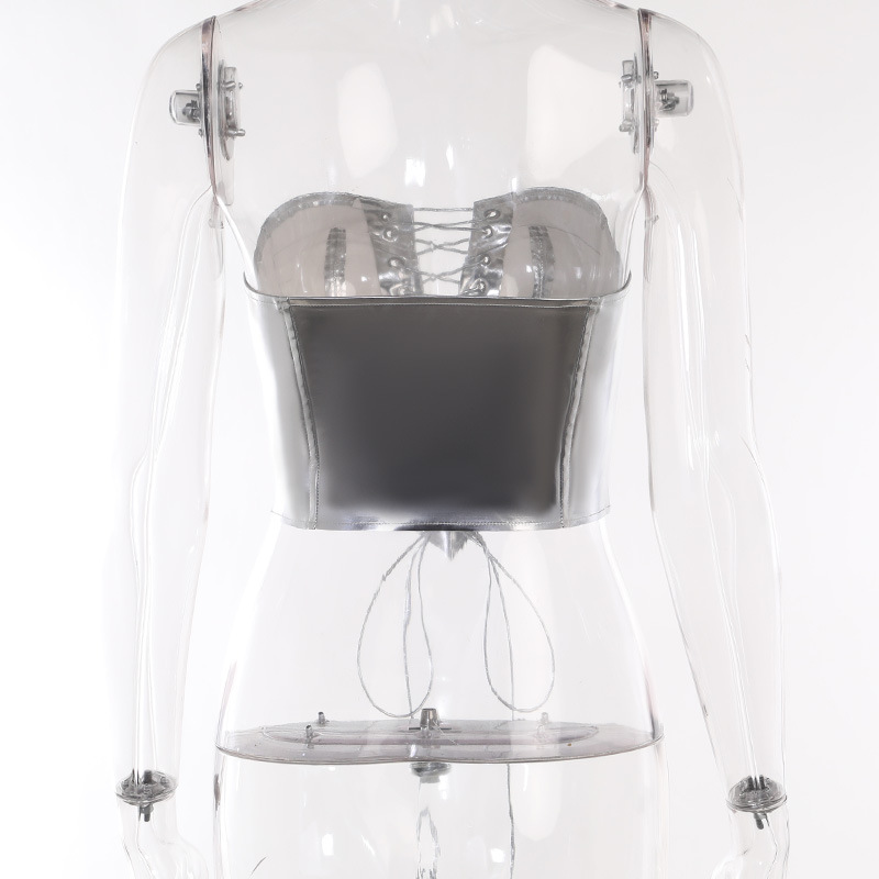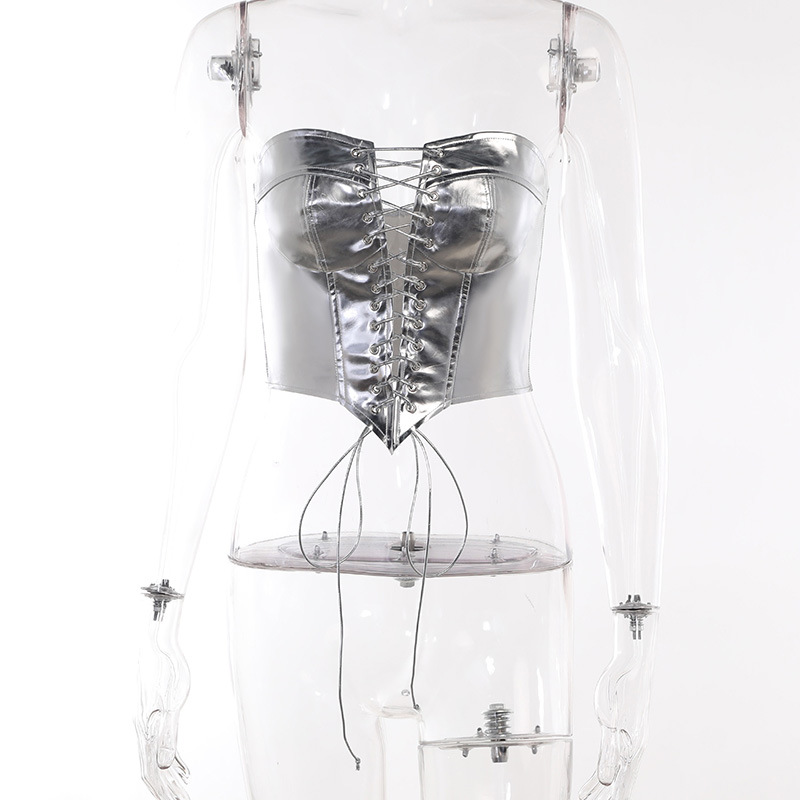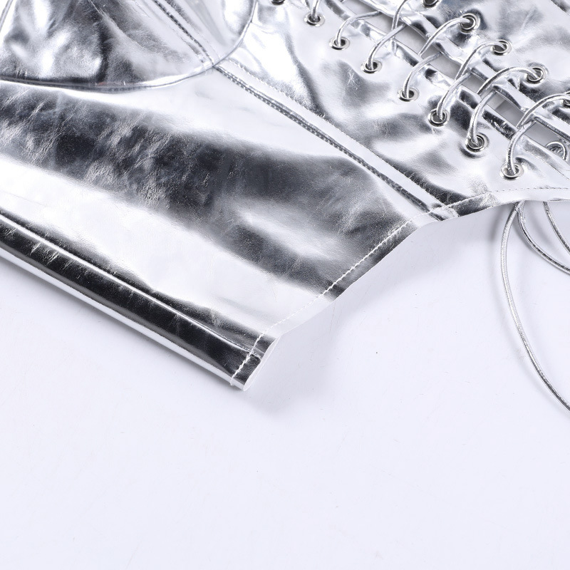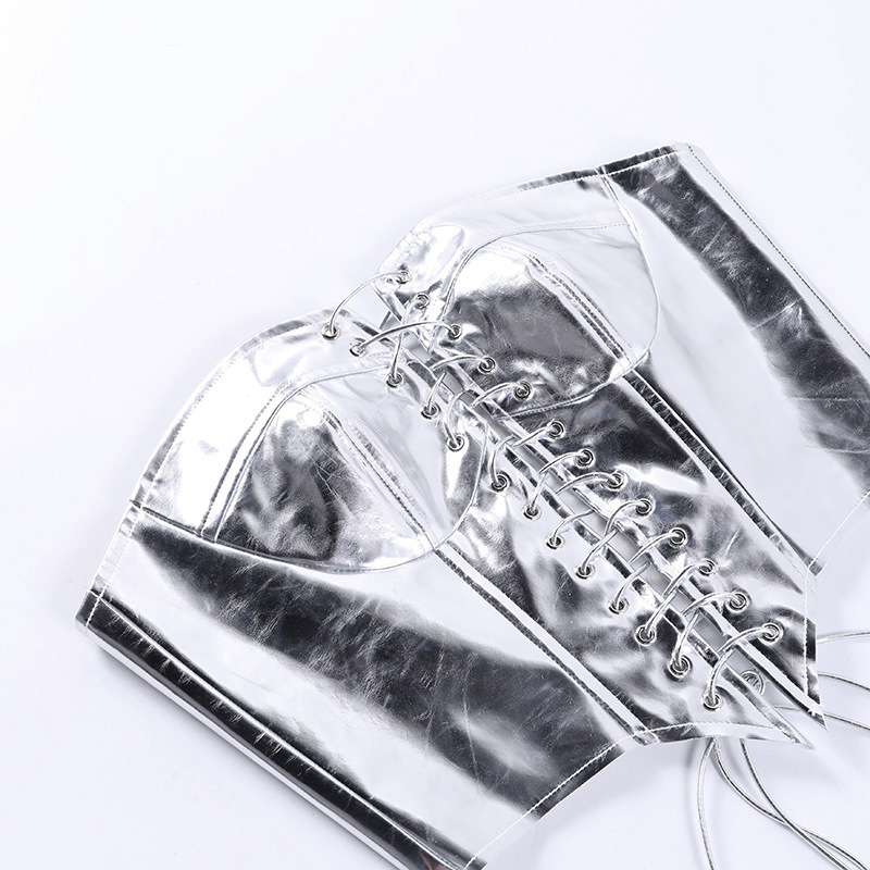 Haut tube tendance et assorti, coupe slim, avec bretelles en cuir brillant et ceinture nouée à la taille