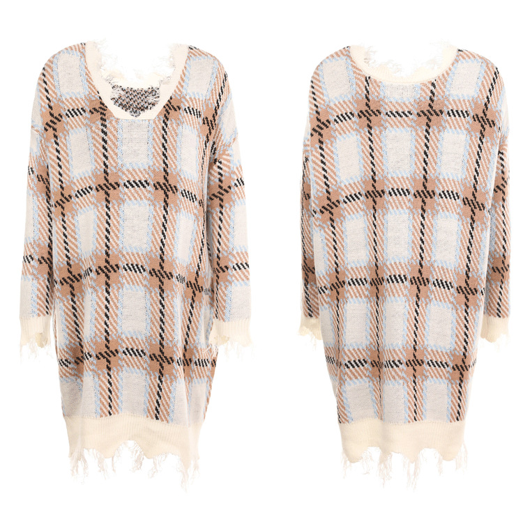 Pull décontracté à col en V et manches longues, style décontracté, à carreaux, sans ceinture