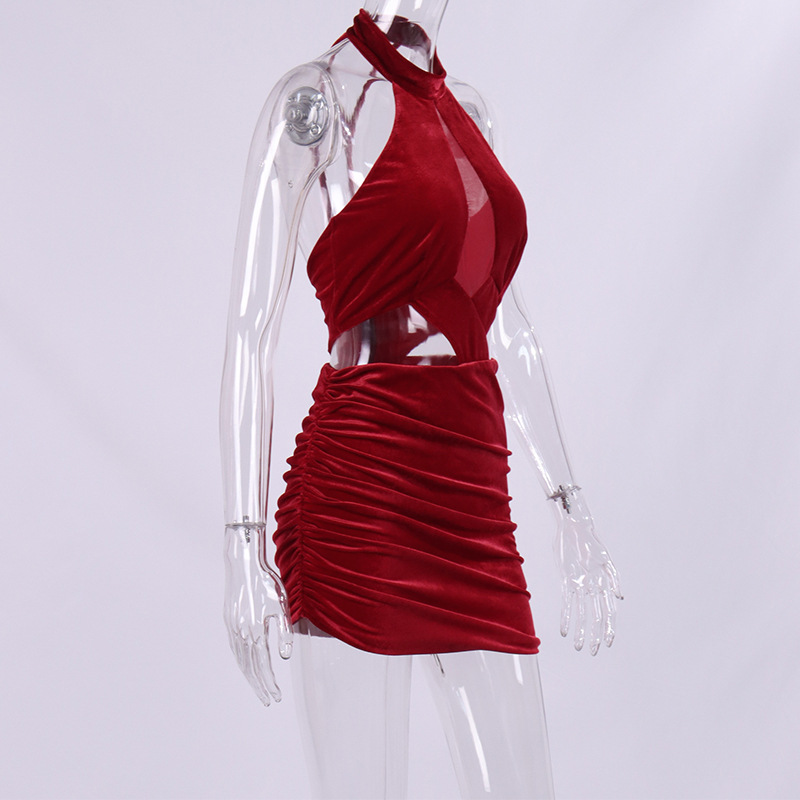 Robe en velours, robe de Noël, robe de soirée, corset, plissée, ajourée, dos nu, à la hanche