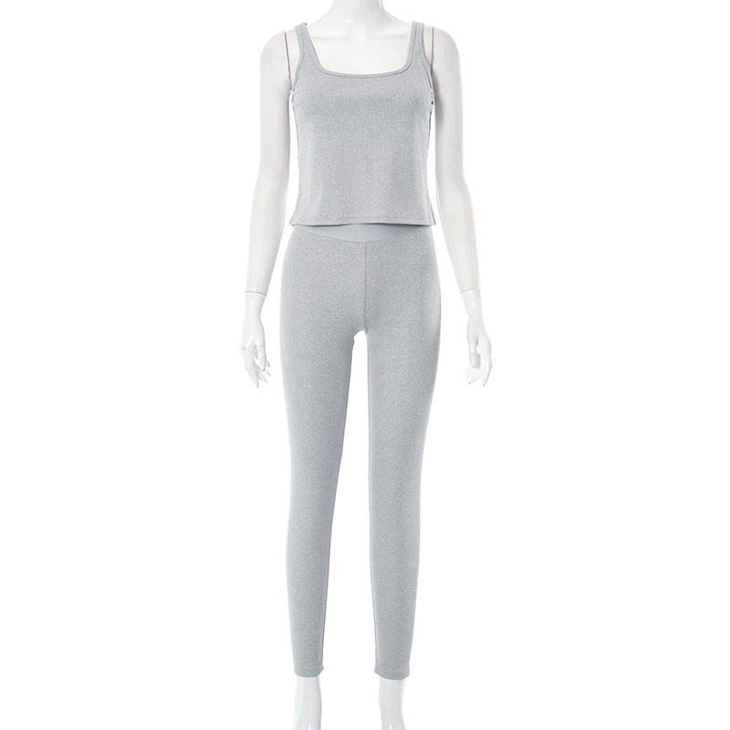 Ensemble de sport décontracté avec gilet, haut fendu et pantalon moulant