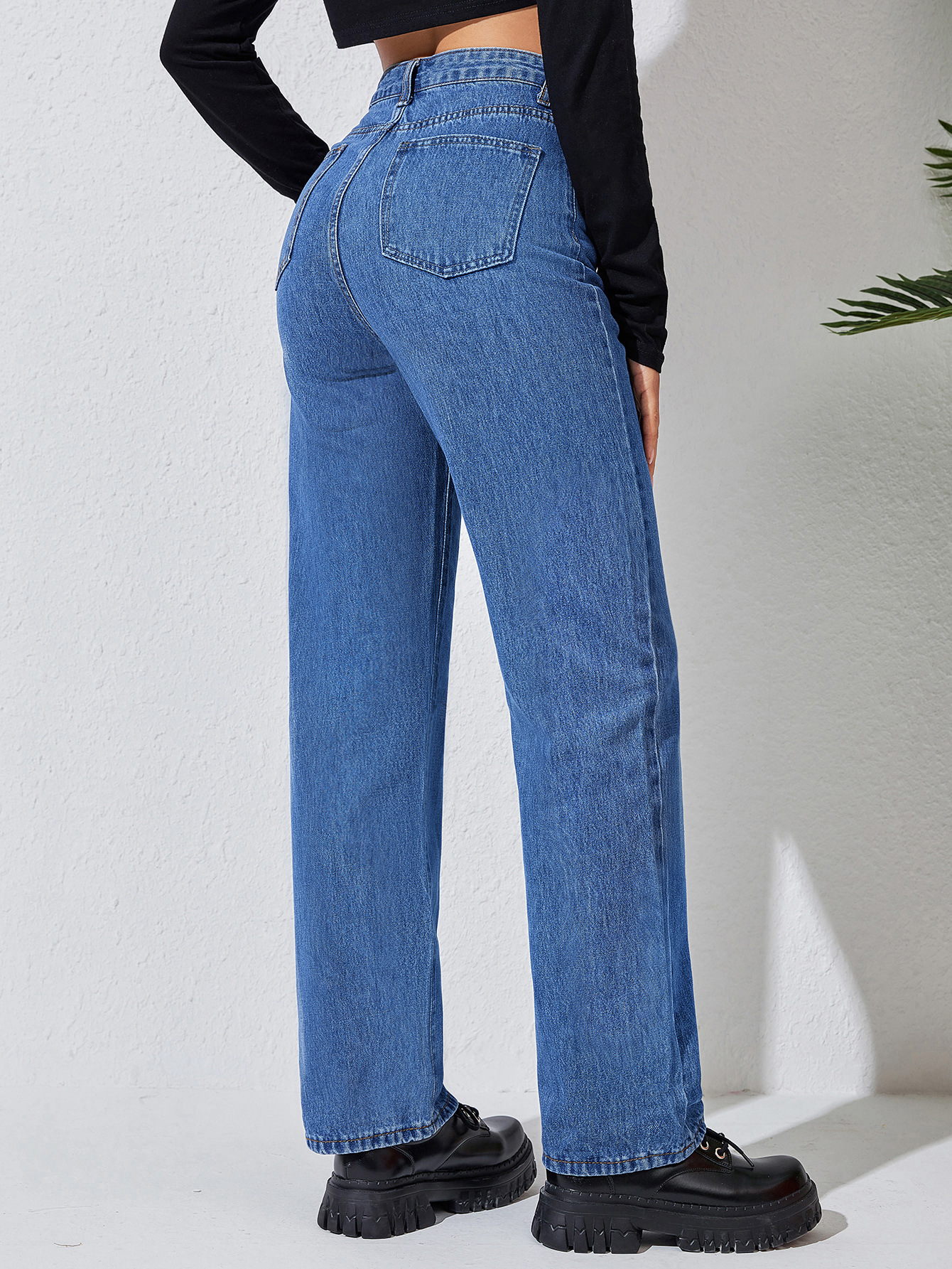 Jean décontracté en denim délavé, pantalon ample taille haute en denim