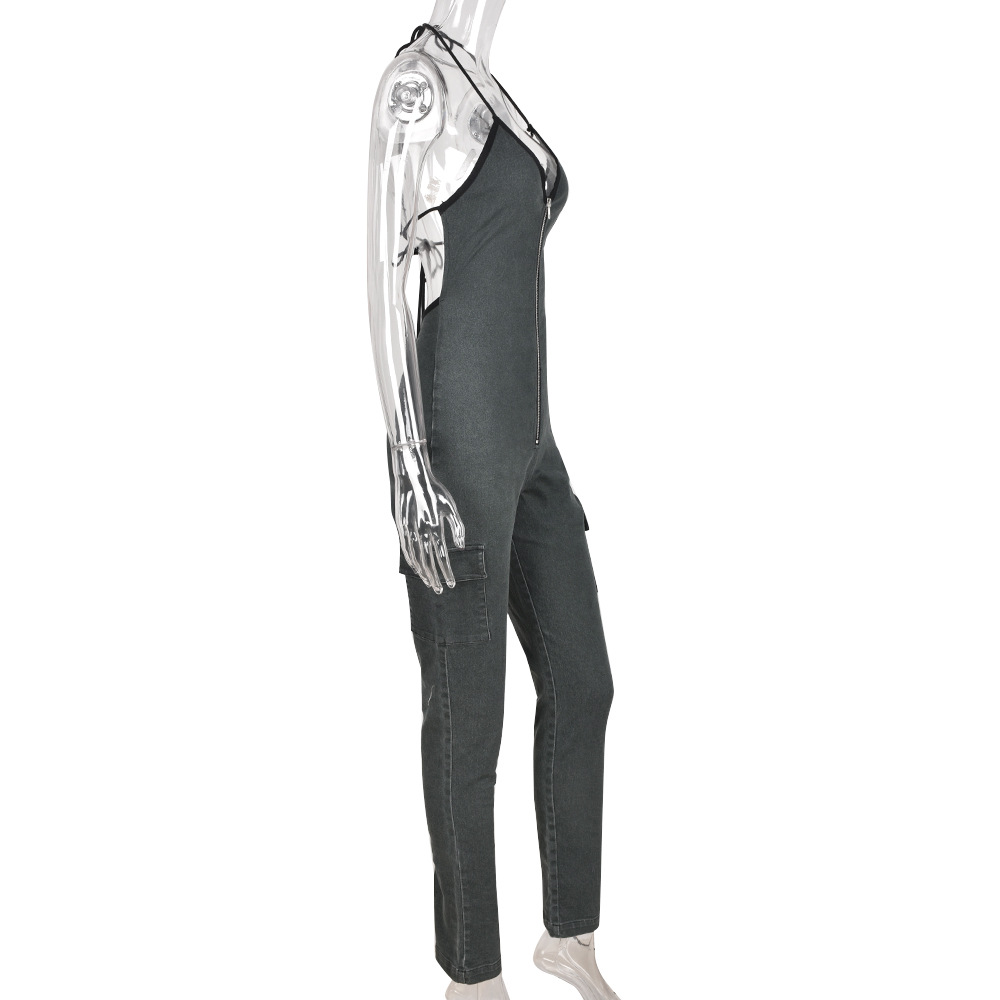Portez une combinaison street cool à fermeture éclair et dos nu