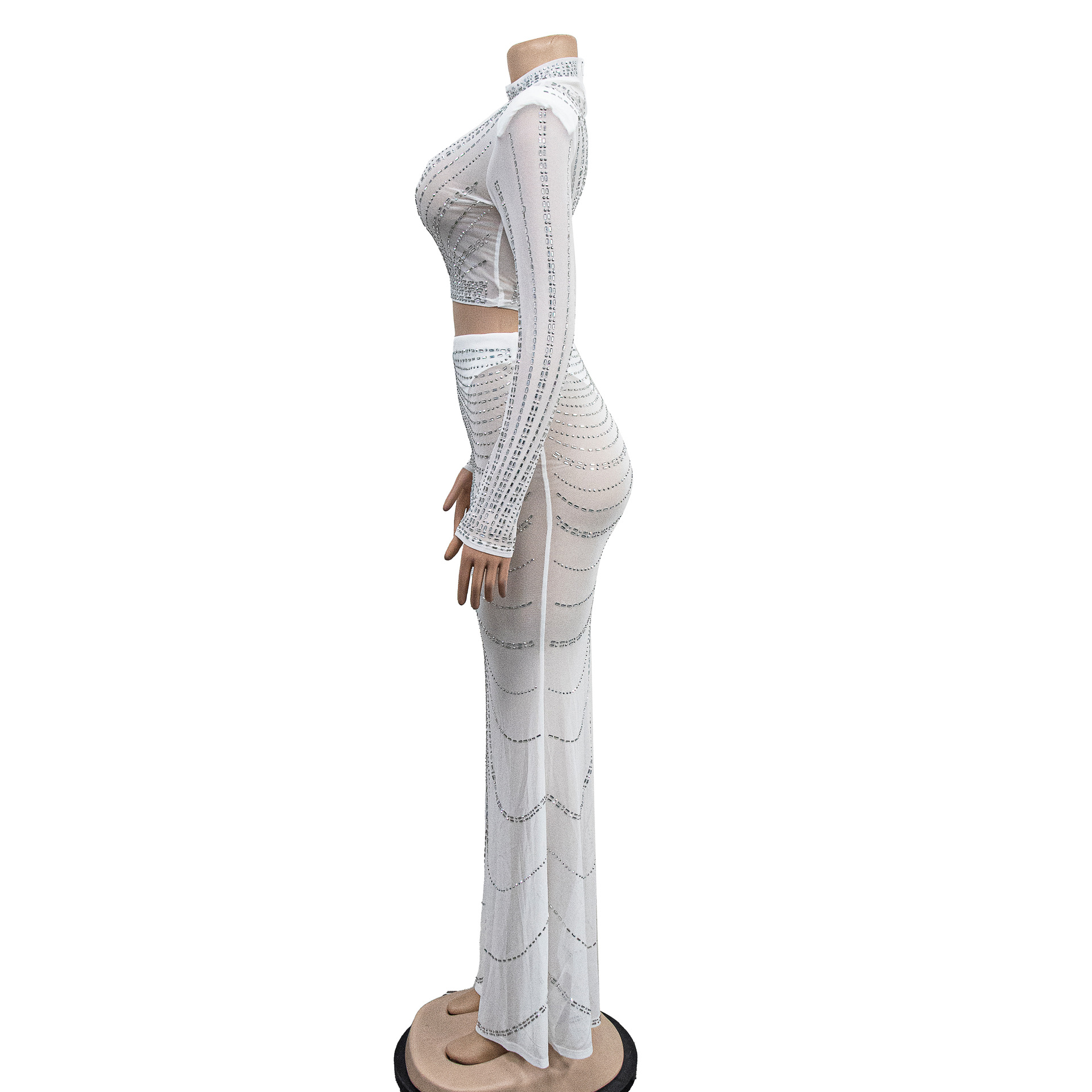 Ensemble deux pièces robe transparente à manches longues et maille perforée