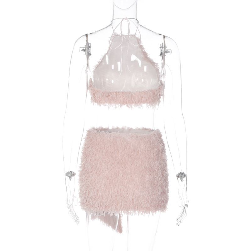 Ensemble en peluche rose dos nu avec coutures sur les hanches et ruban pour socialite