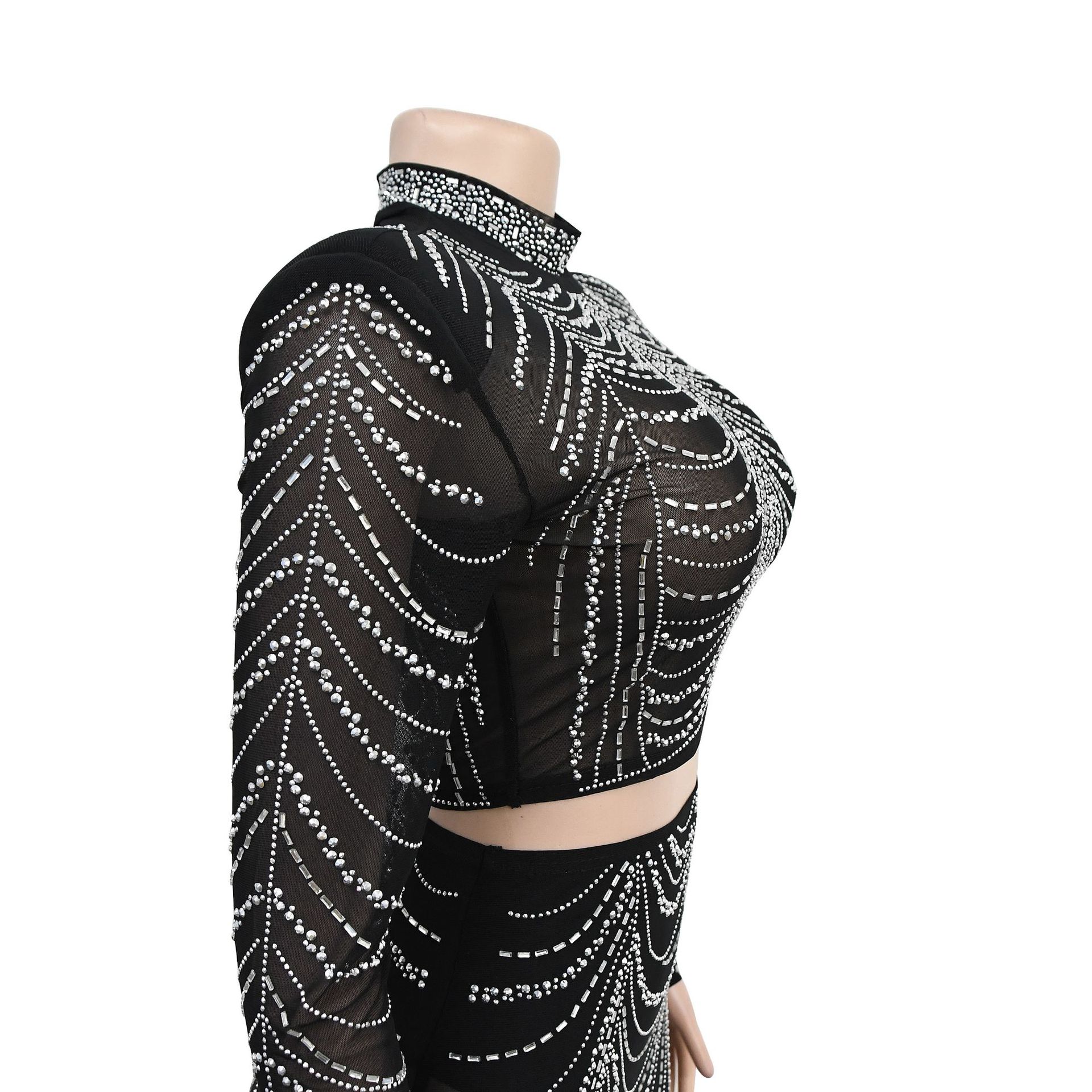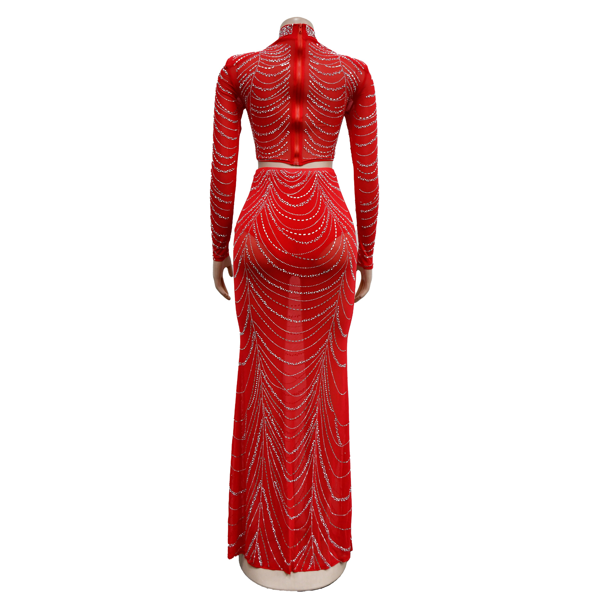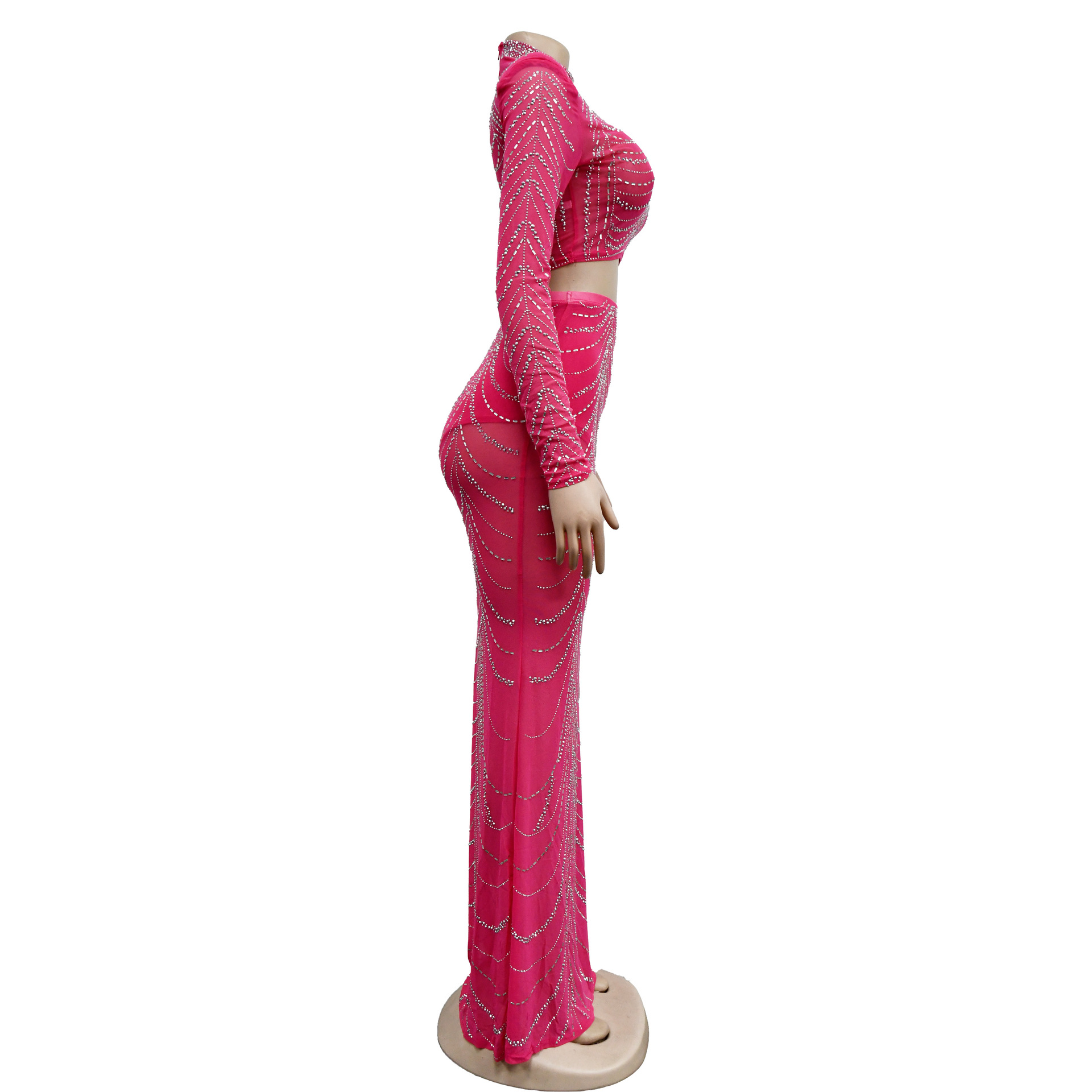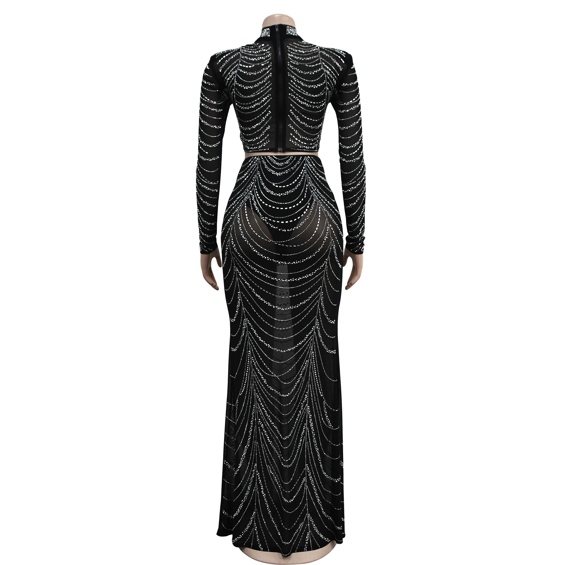 Ensemble deux pièces robe à manches longues en maille de couleur unie