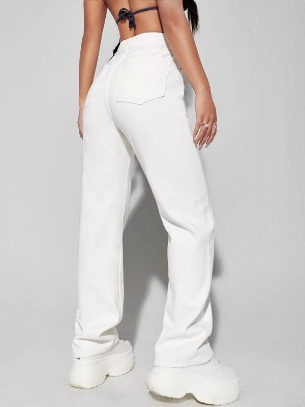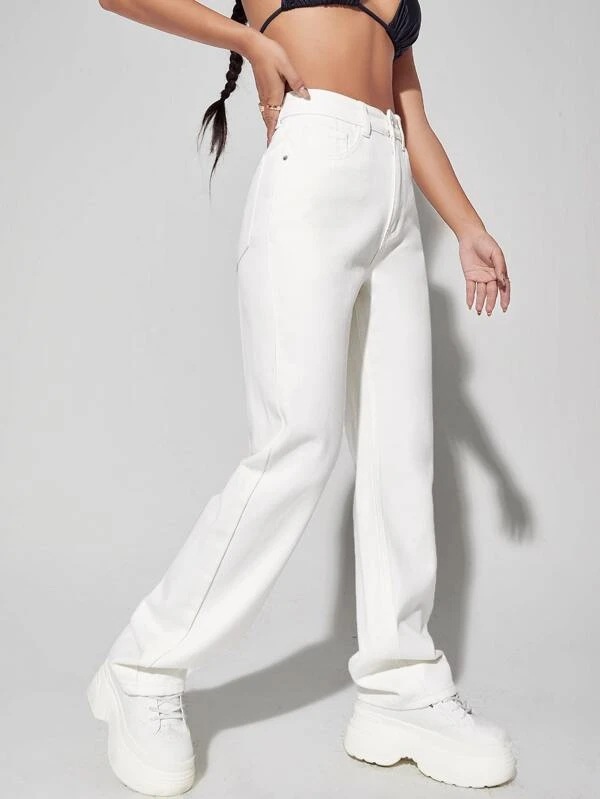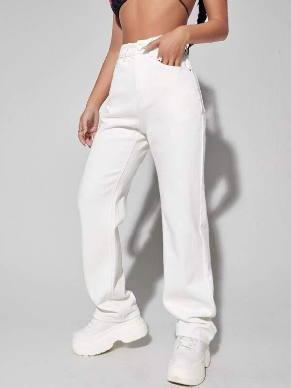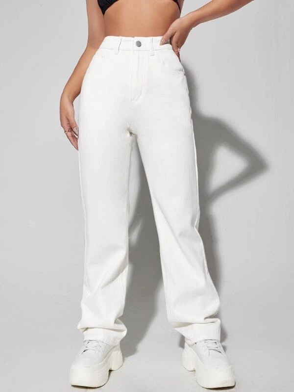Pantalon blanc à jambes larges, taille haute, jean amincissant tombant, pantalon High Street