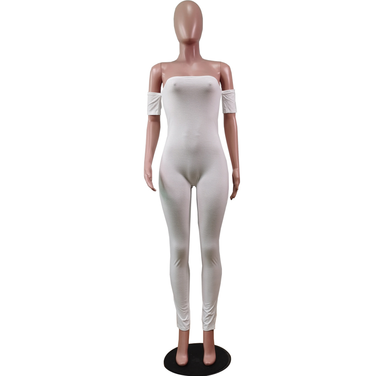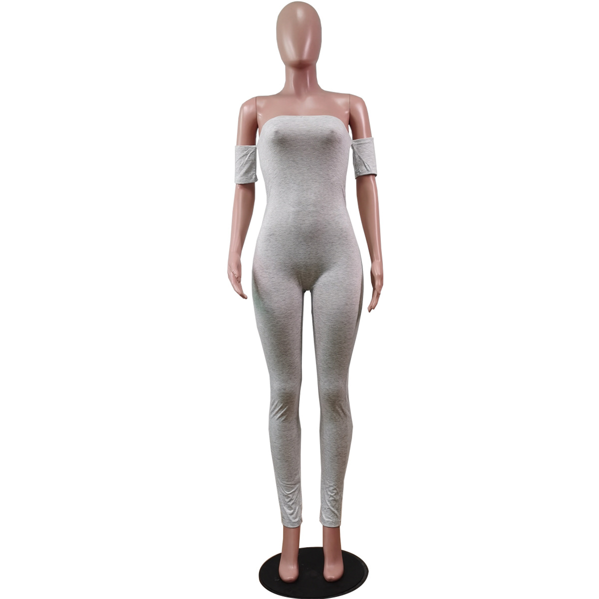 Combinaison pantalon à manches courtes et haut tube imprimé de couleur unie pour femme