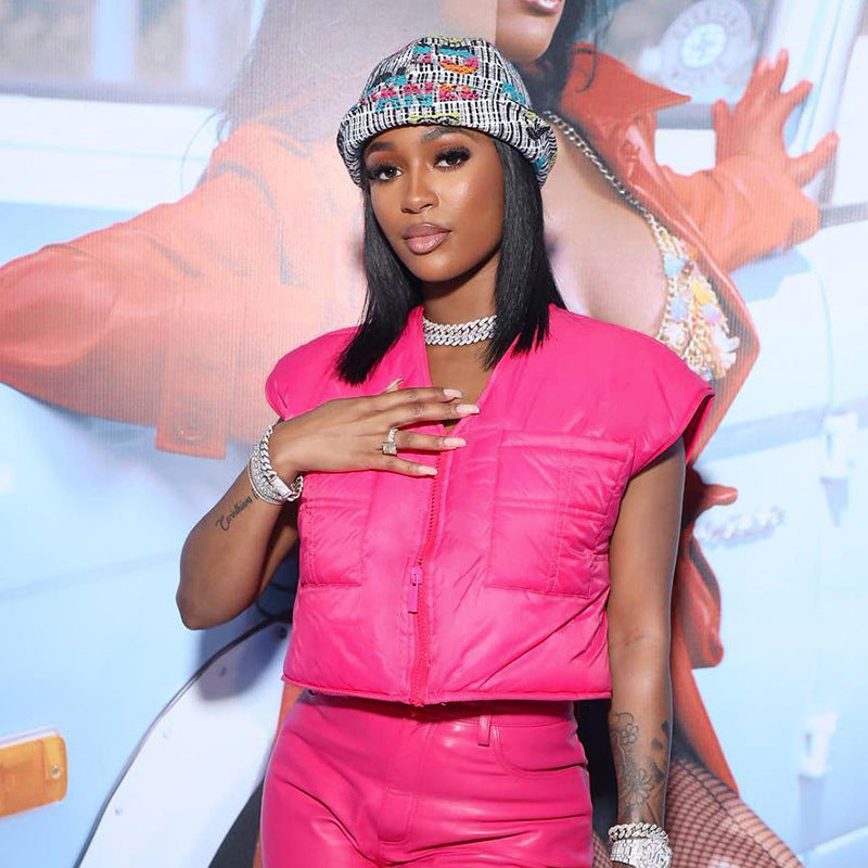 Débardeur court sans manches avec poche zippée