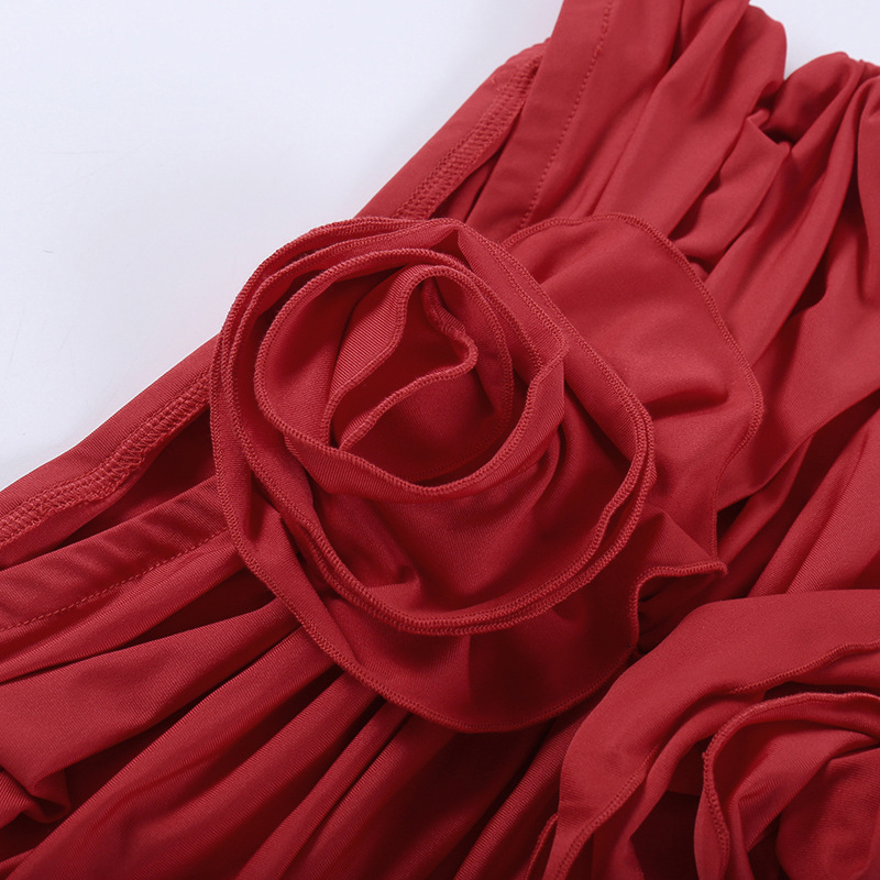 3D Three Dimensional Floral Lace up Cutout Dress Elegant Slim Fit Pleated Cami Dress