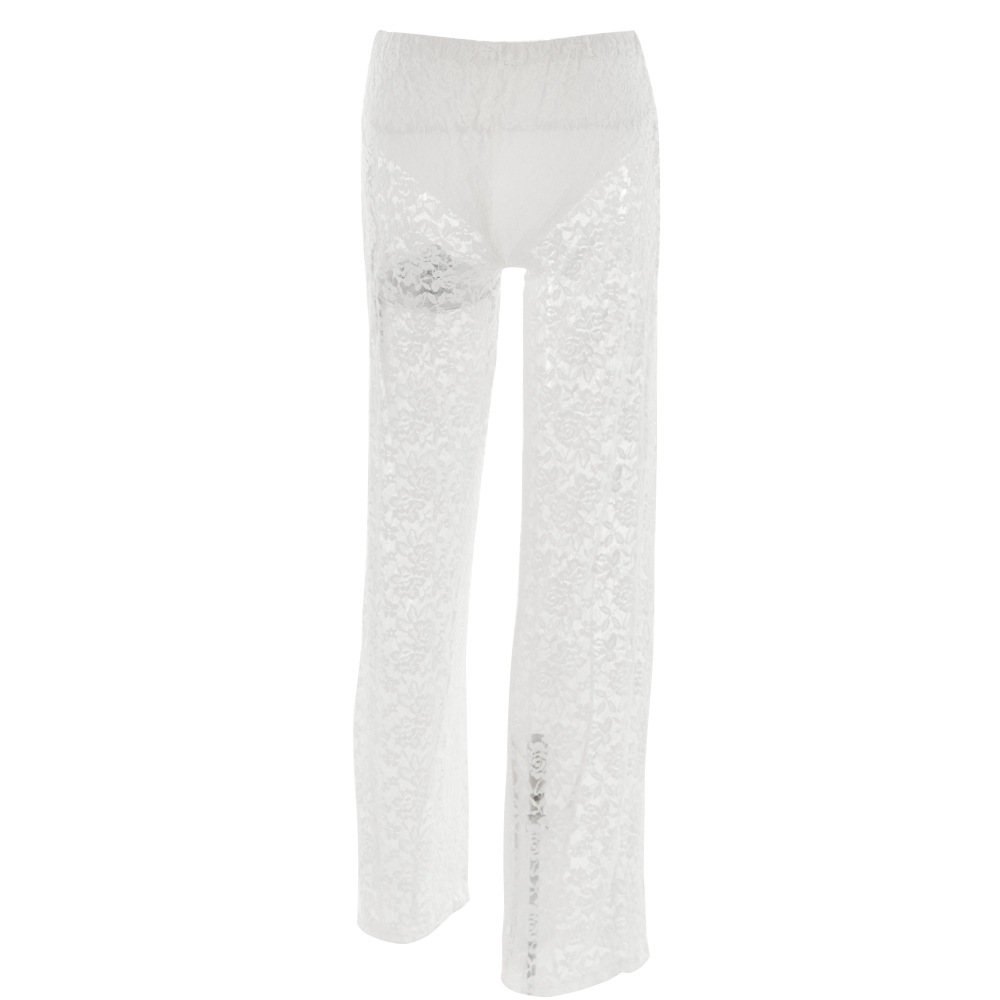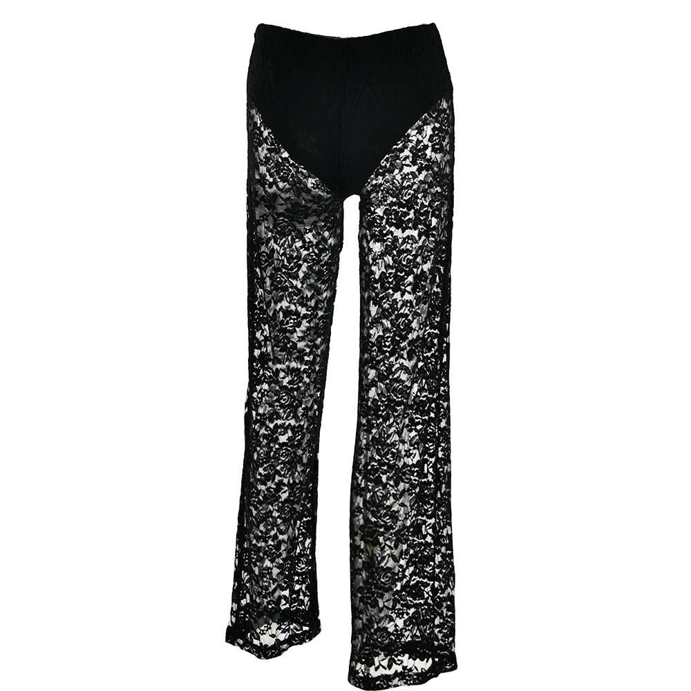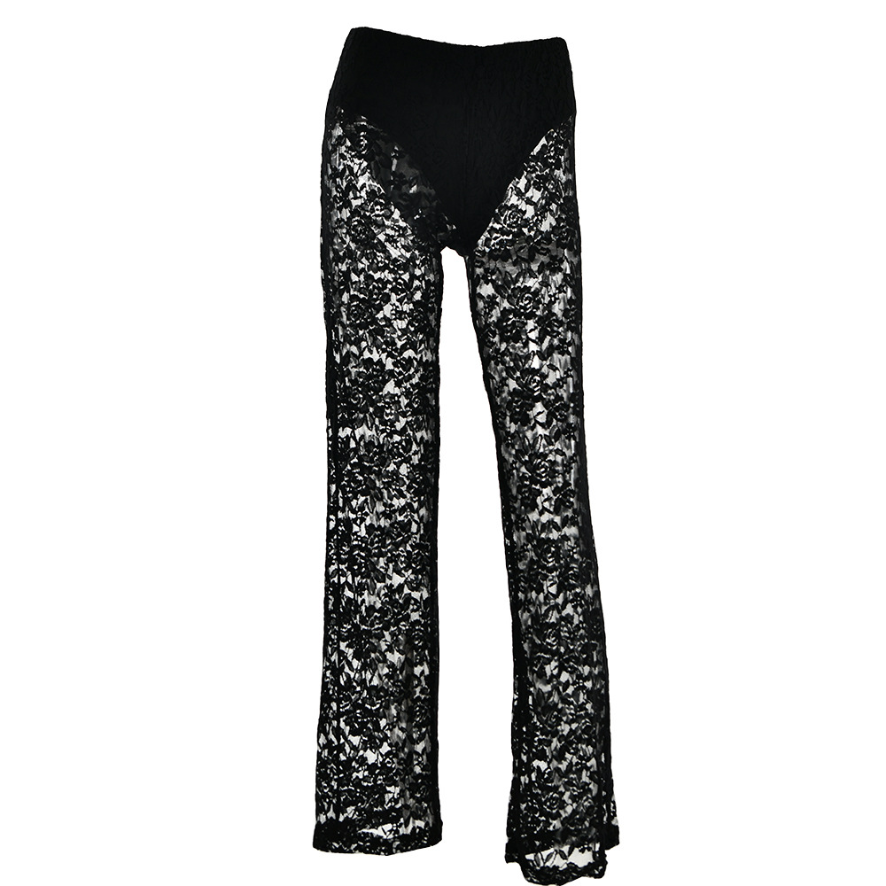 All Matching Lace See through High Waist Stitching Long Straight Leg Pants