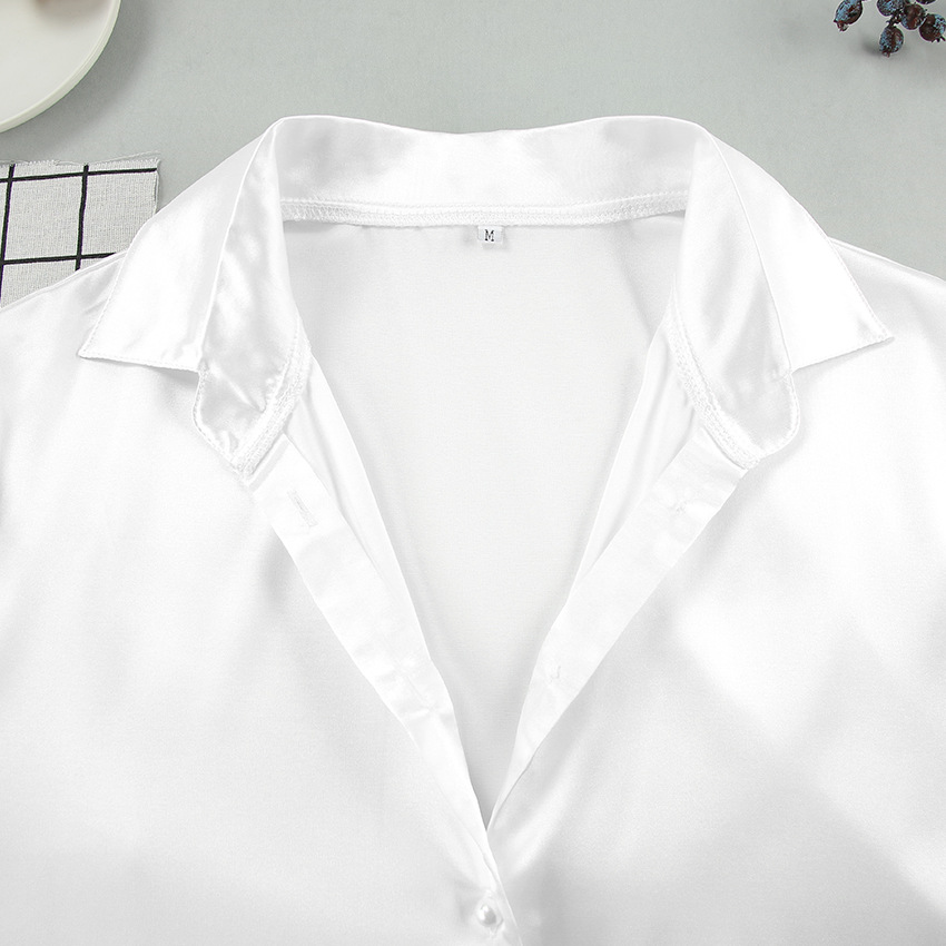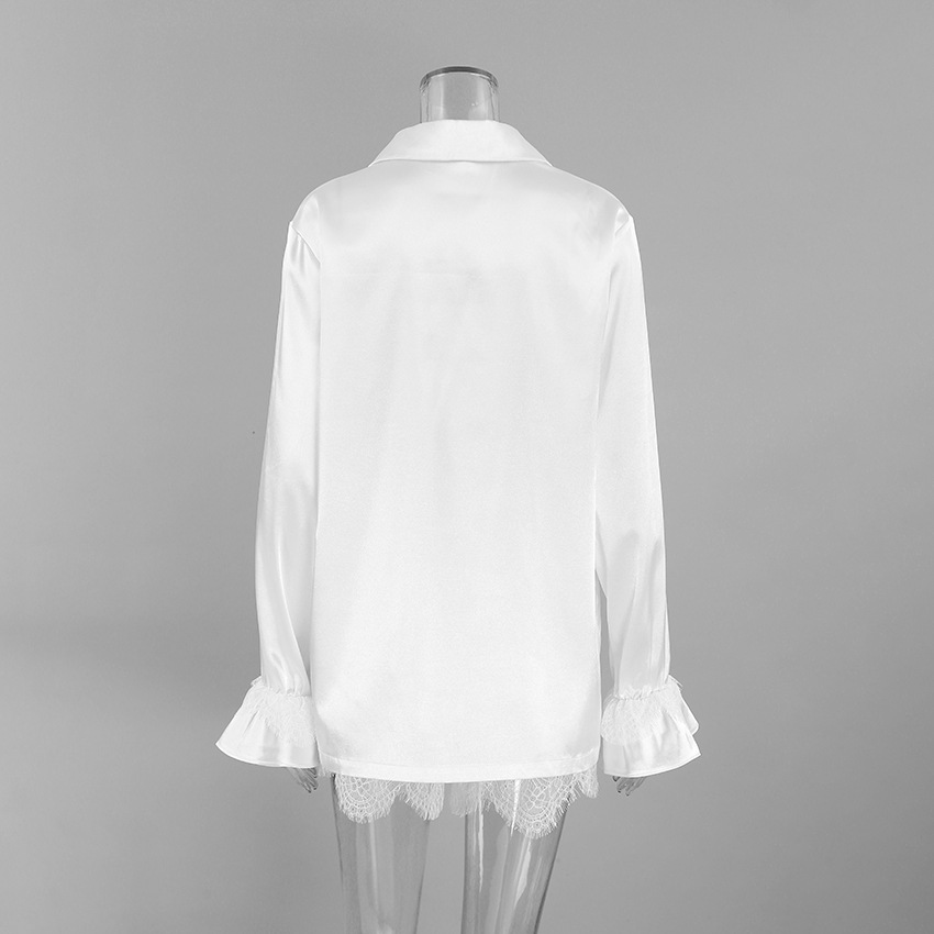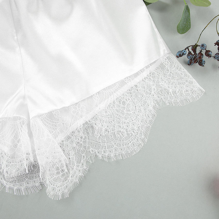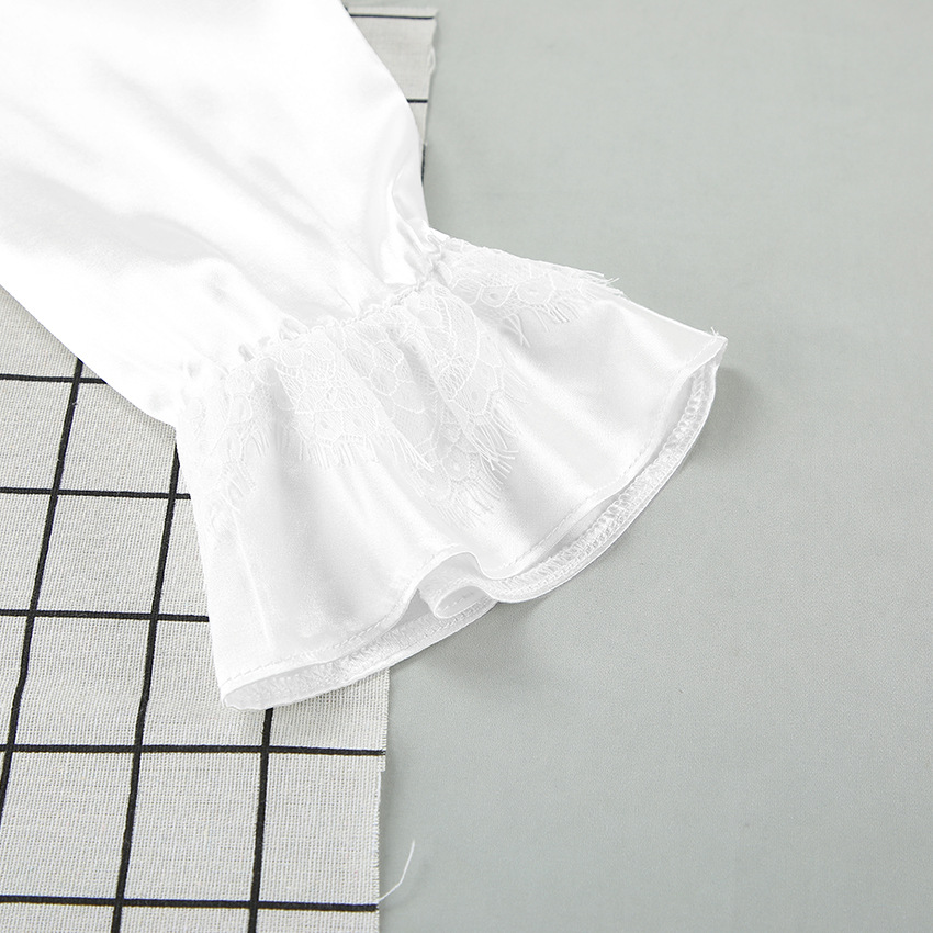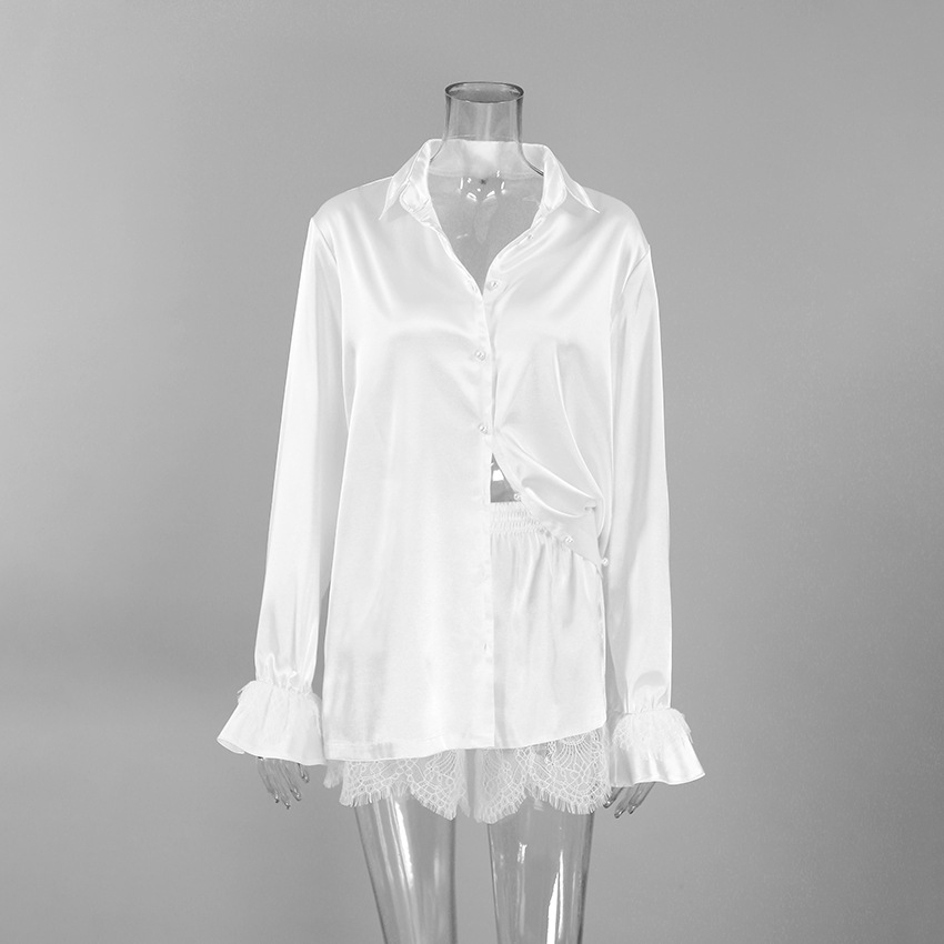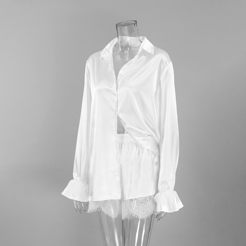 Artificial Silk Collared Lace Shorts Long Sleeved Pajamas Two Piece Set Homewear
