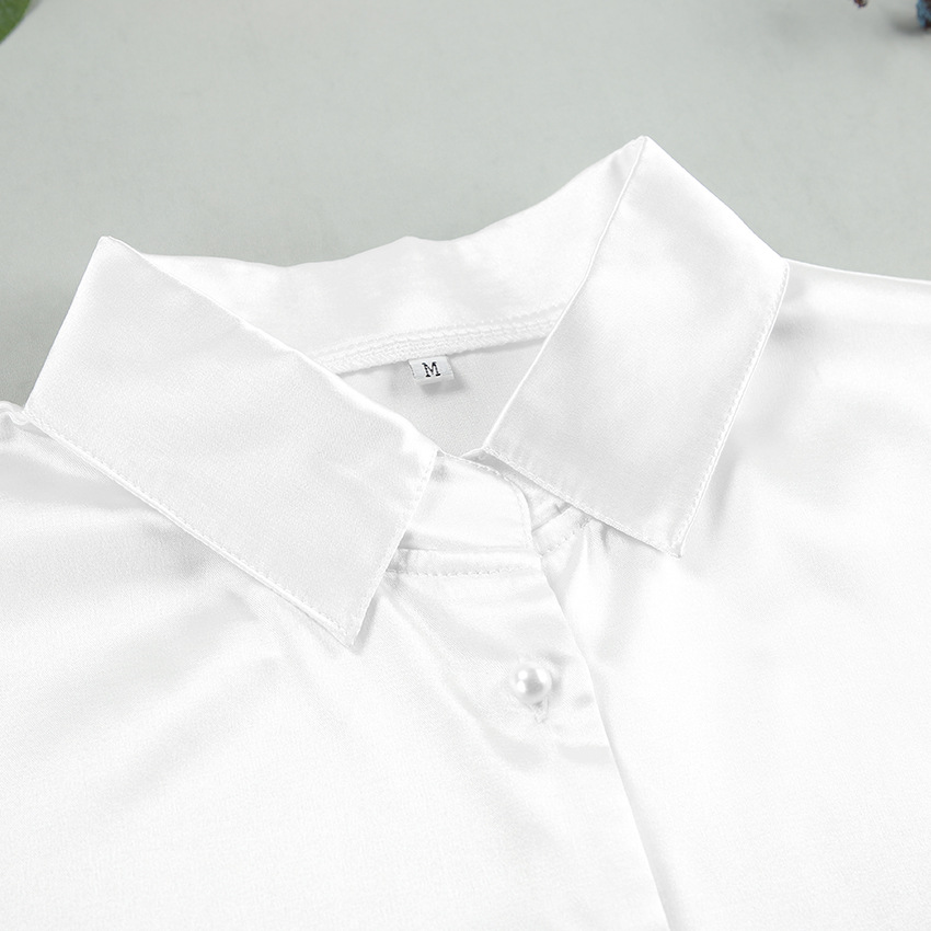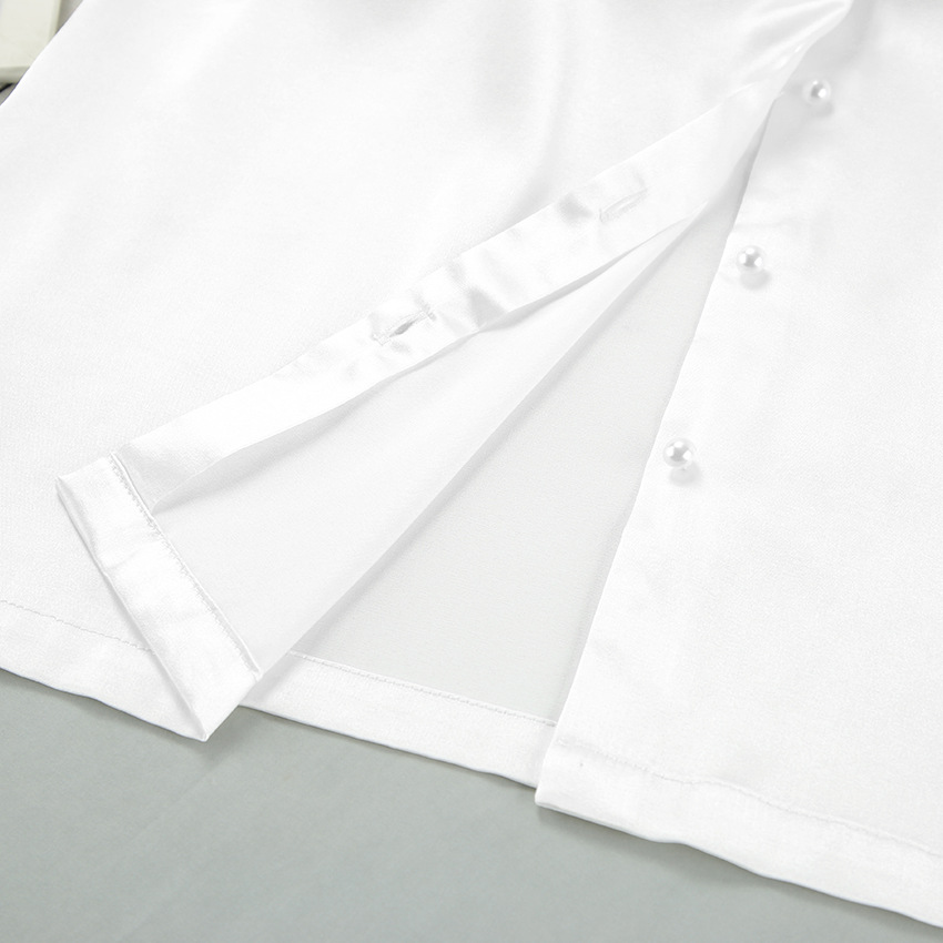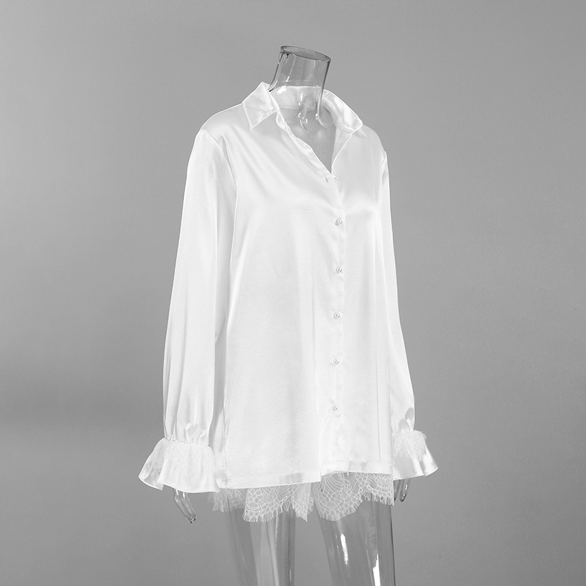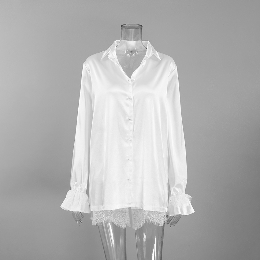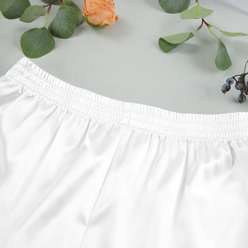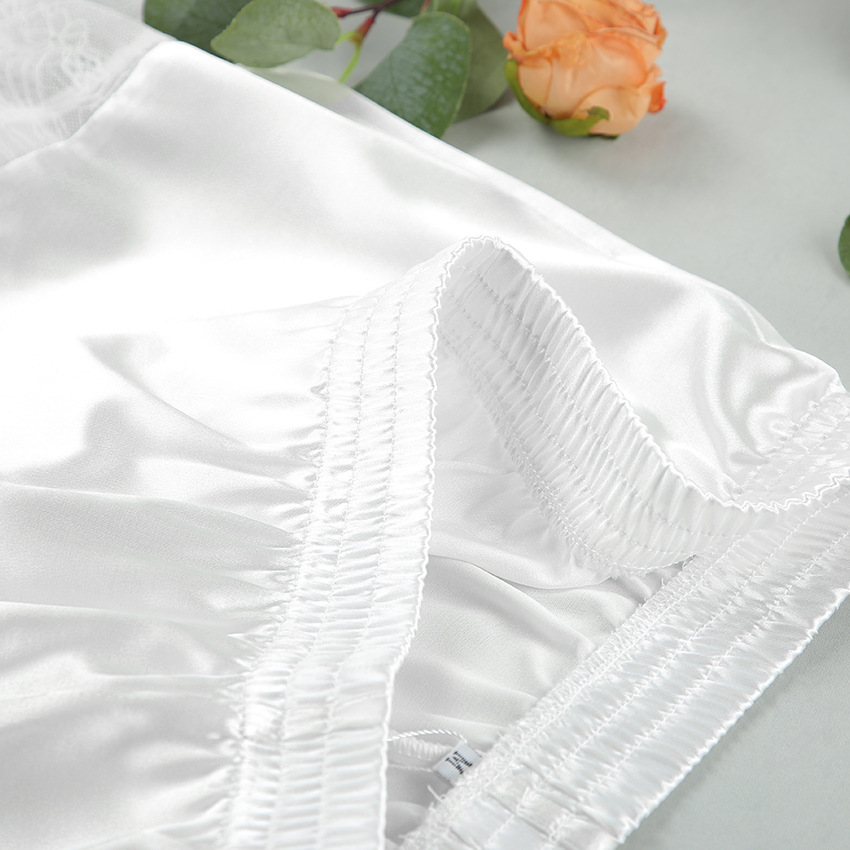 Artificial Silk Collared Lace Shorts Long Sleeved Pajamas Two Piece Set Homewear