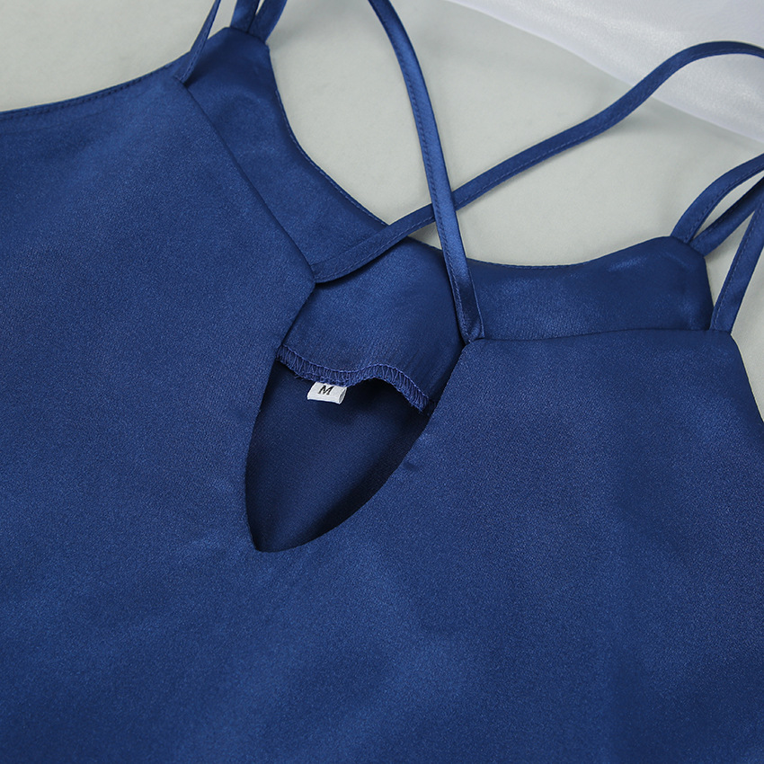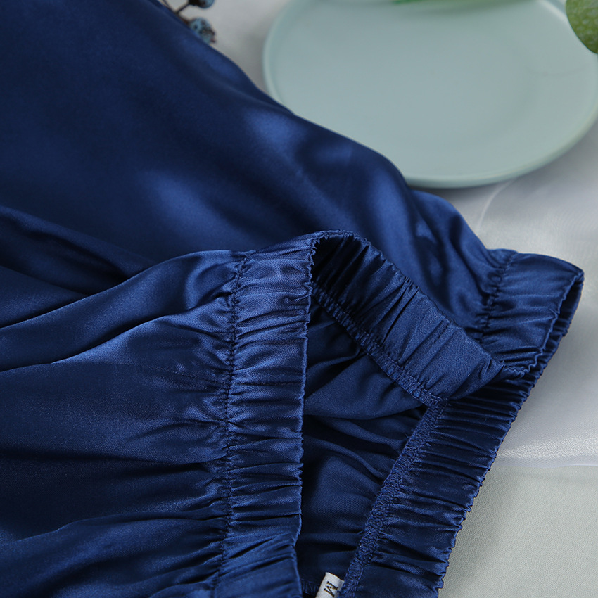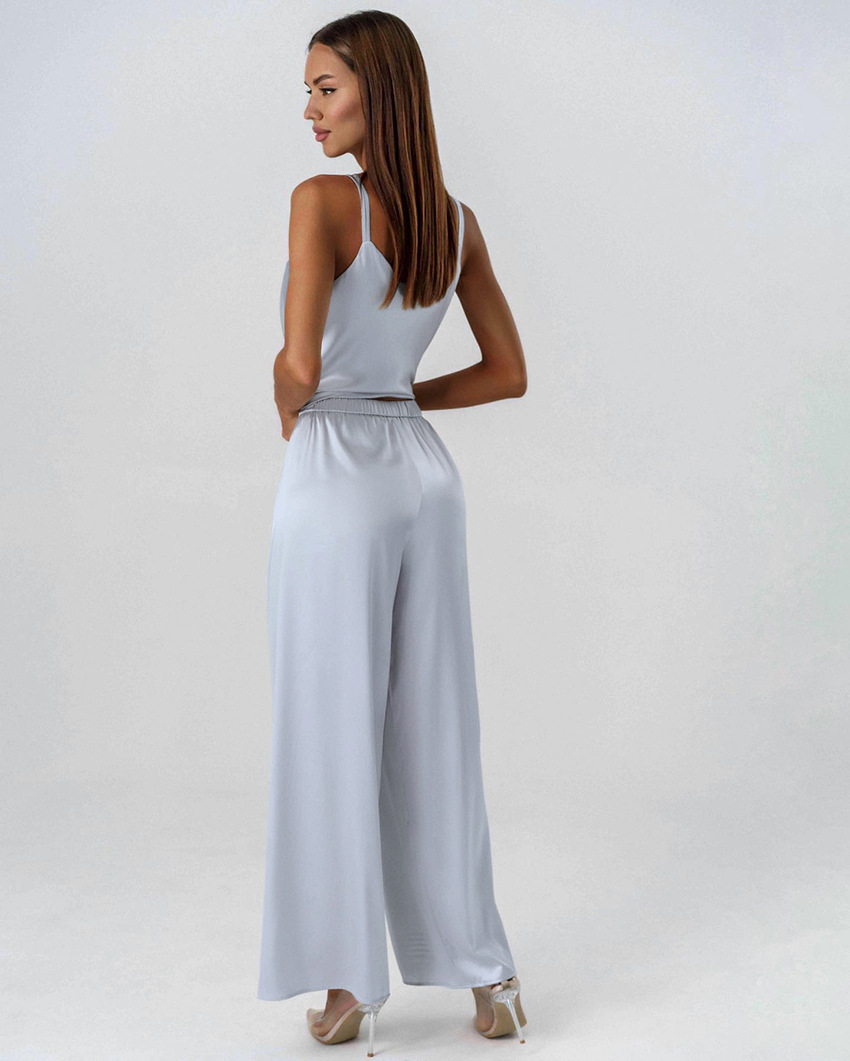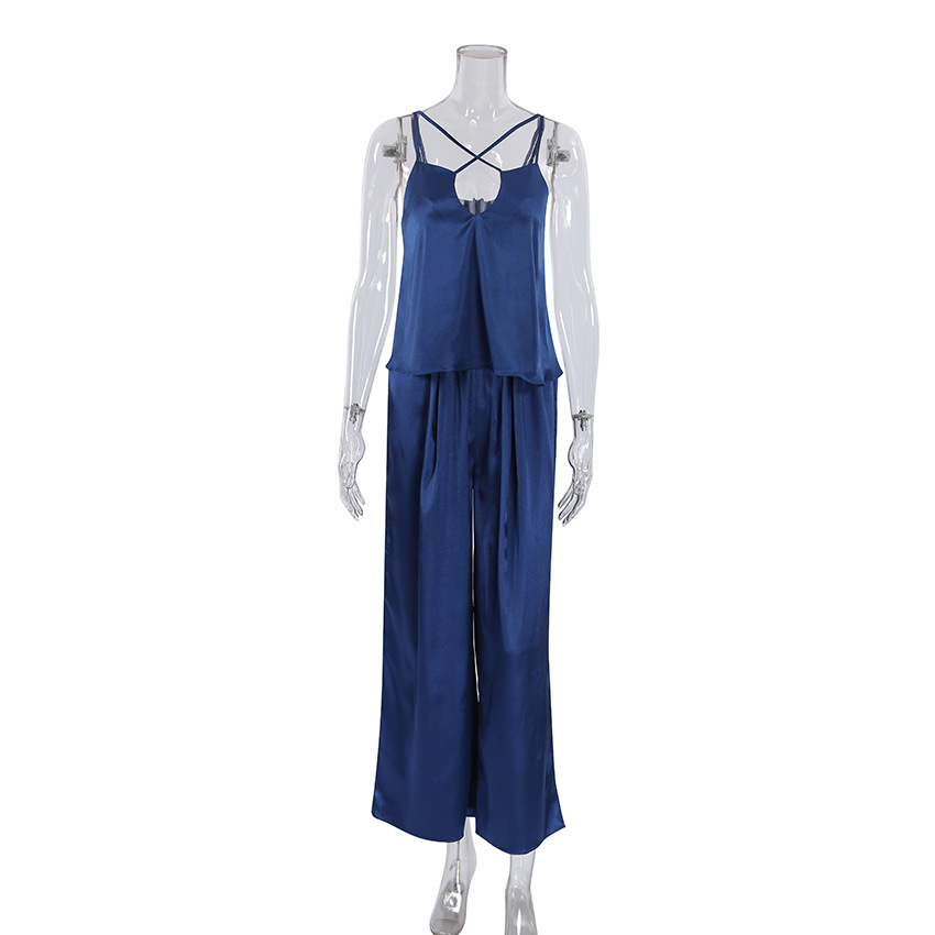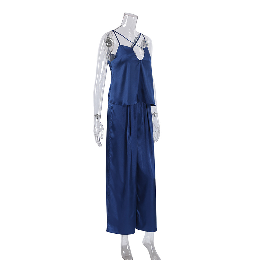 Artificial Silk Cool Comfortable Pajamas Suspenders Trousers Solid Color Homewear