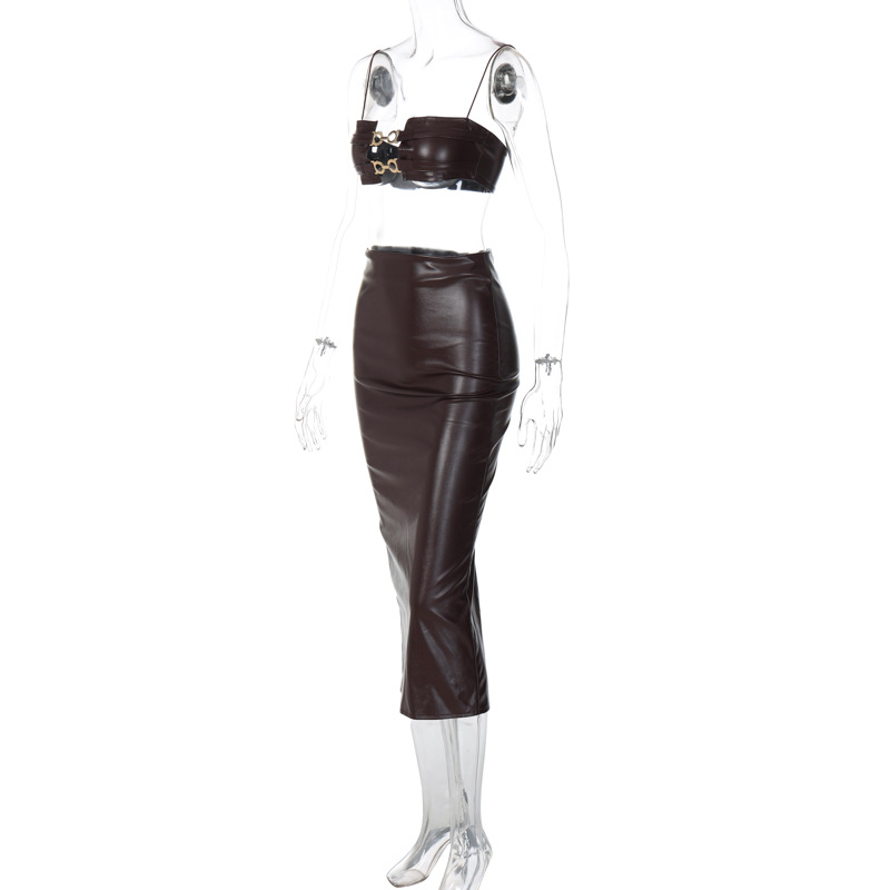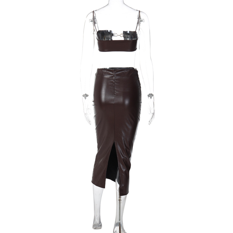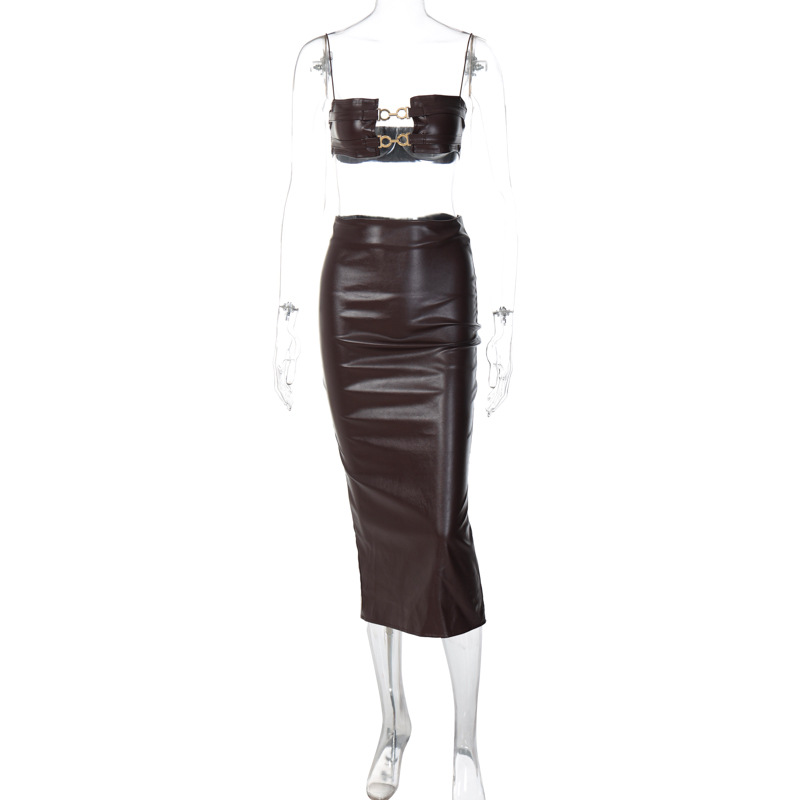 Bandeau Camisole Tight Slit Hip Skirt Two Piece Set