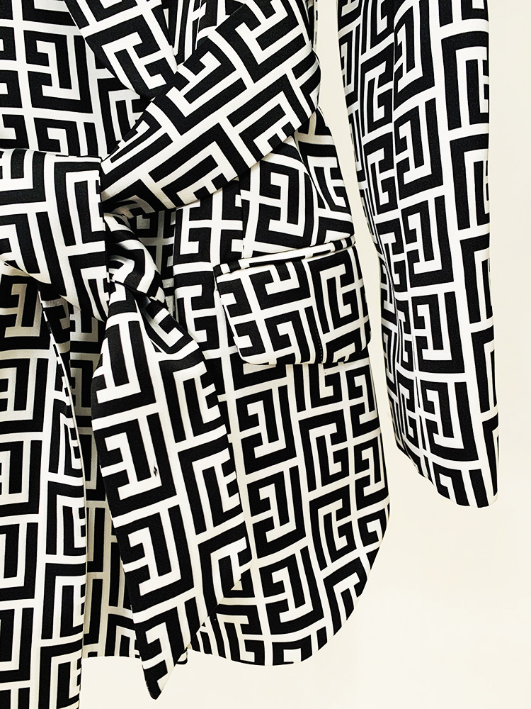 Belt Maze Print Double Breasted Mid Length Green Fruit Collar Blazer