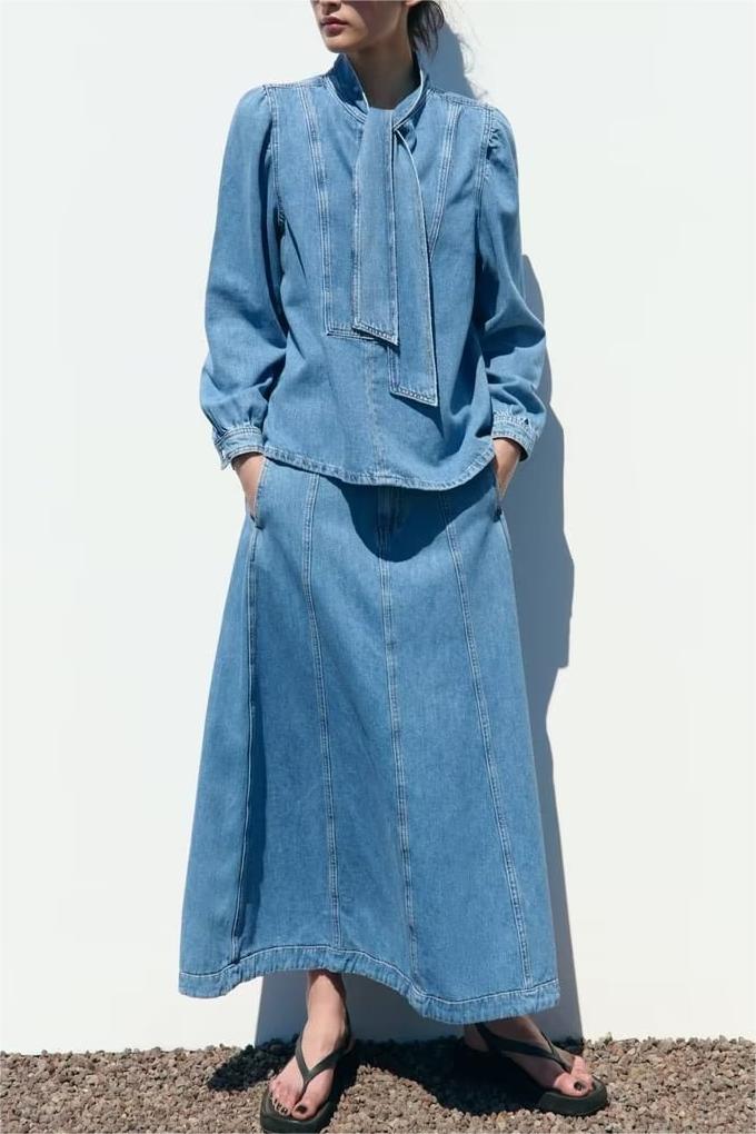 Bowknot Decoration Denim Shirt Denim Cape Skirt Jeans Set