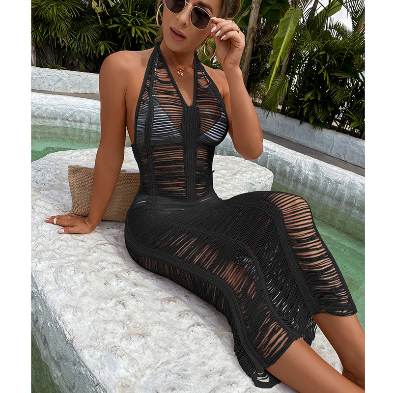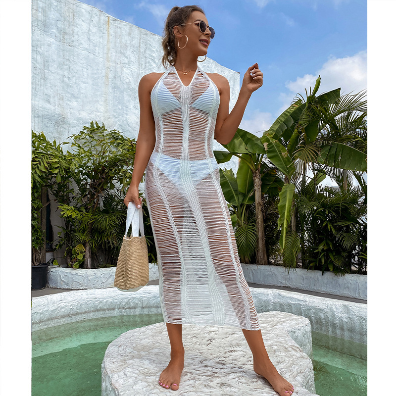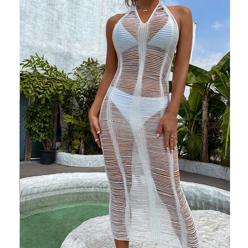 Cami Dress Hollow Out Cutout Halter Strap Dress Bikini Cover-up Skirt Beach Dress