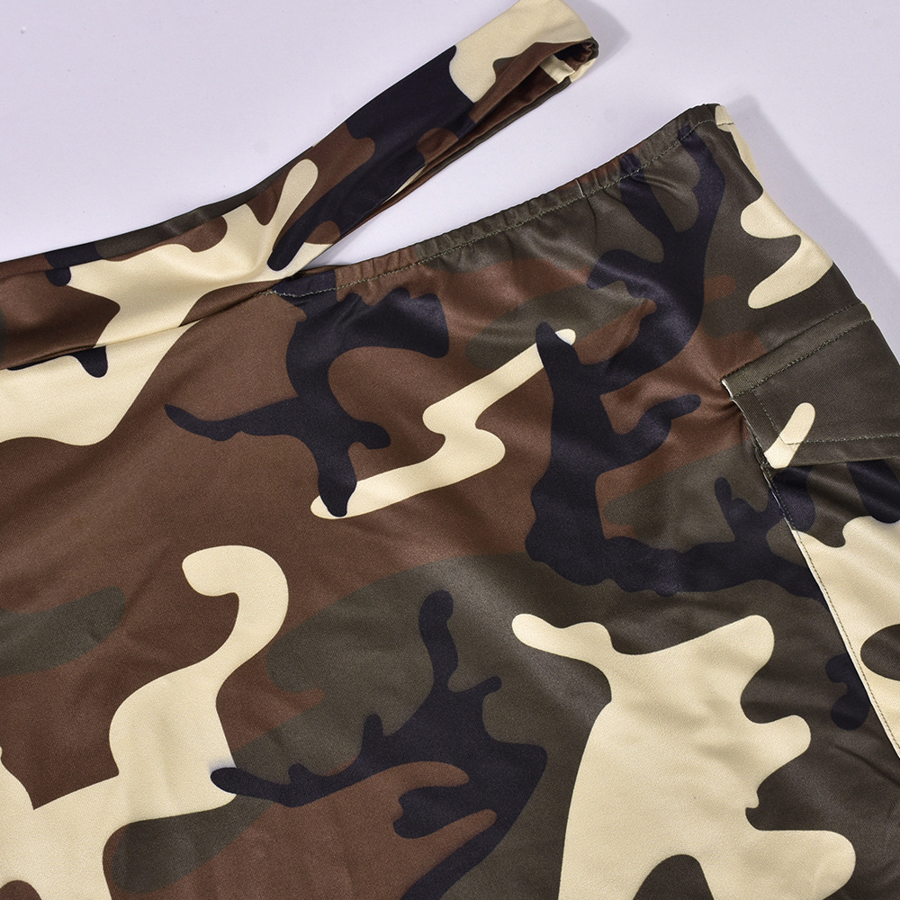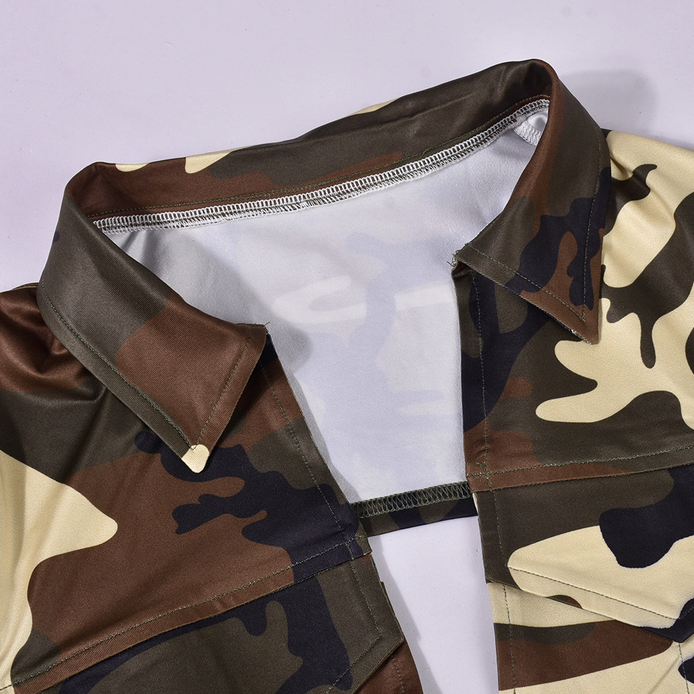 Camouflage Shirt Collar Lace up Long Sleeve Short Skirt Street Two Piece Set