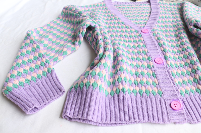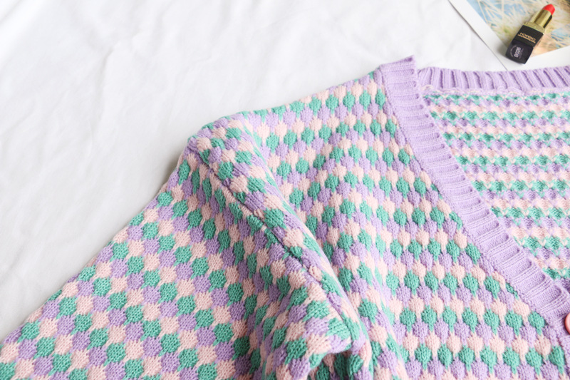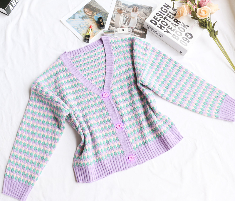 Cardigan Retro Rainbow Striped V neck Short Sweater Coat