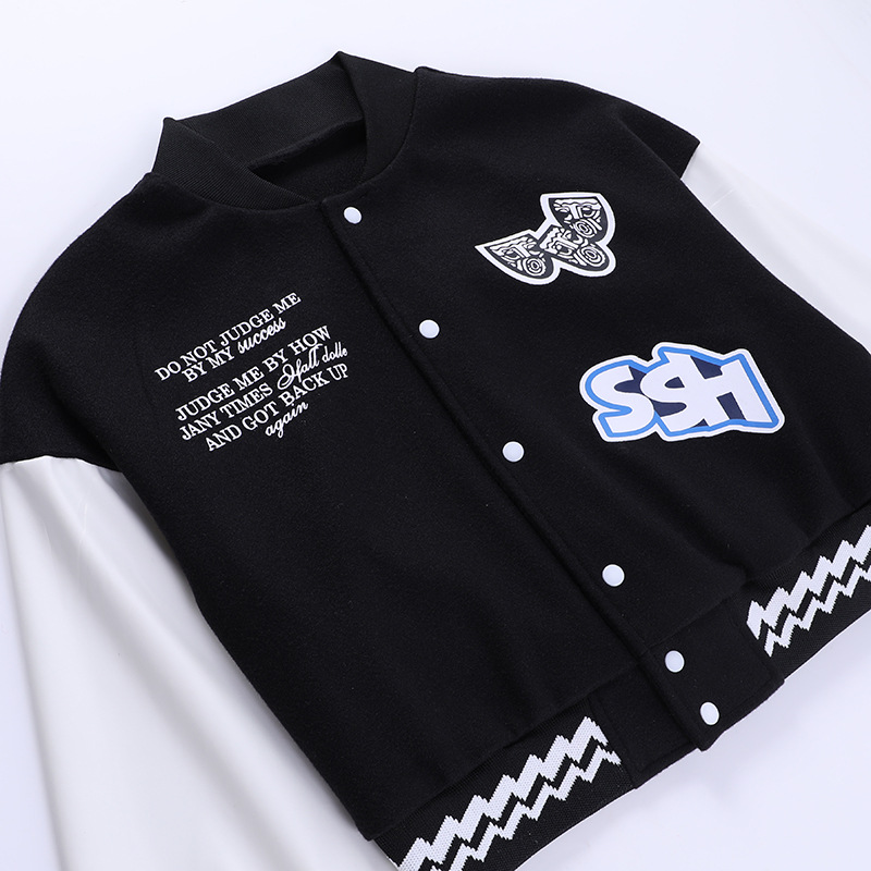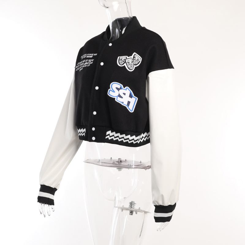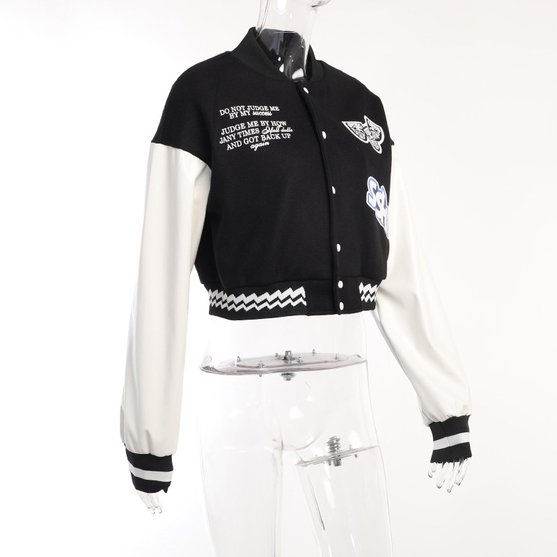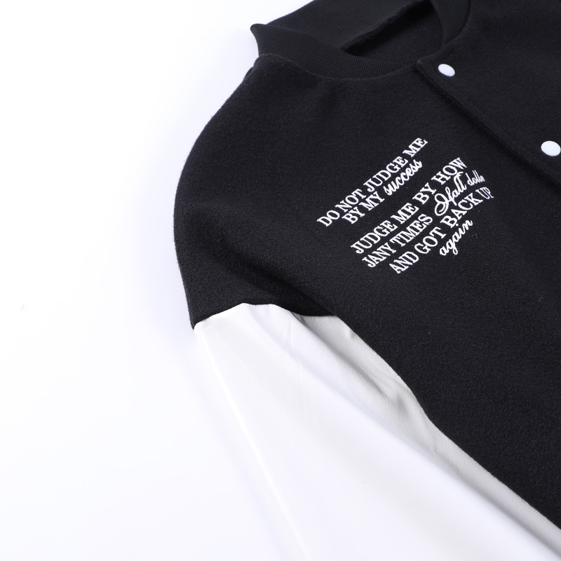Casual All Matching Slim Fit Printed Varsity Jacket Loose Contrast Color Coat Top