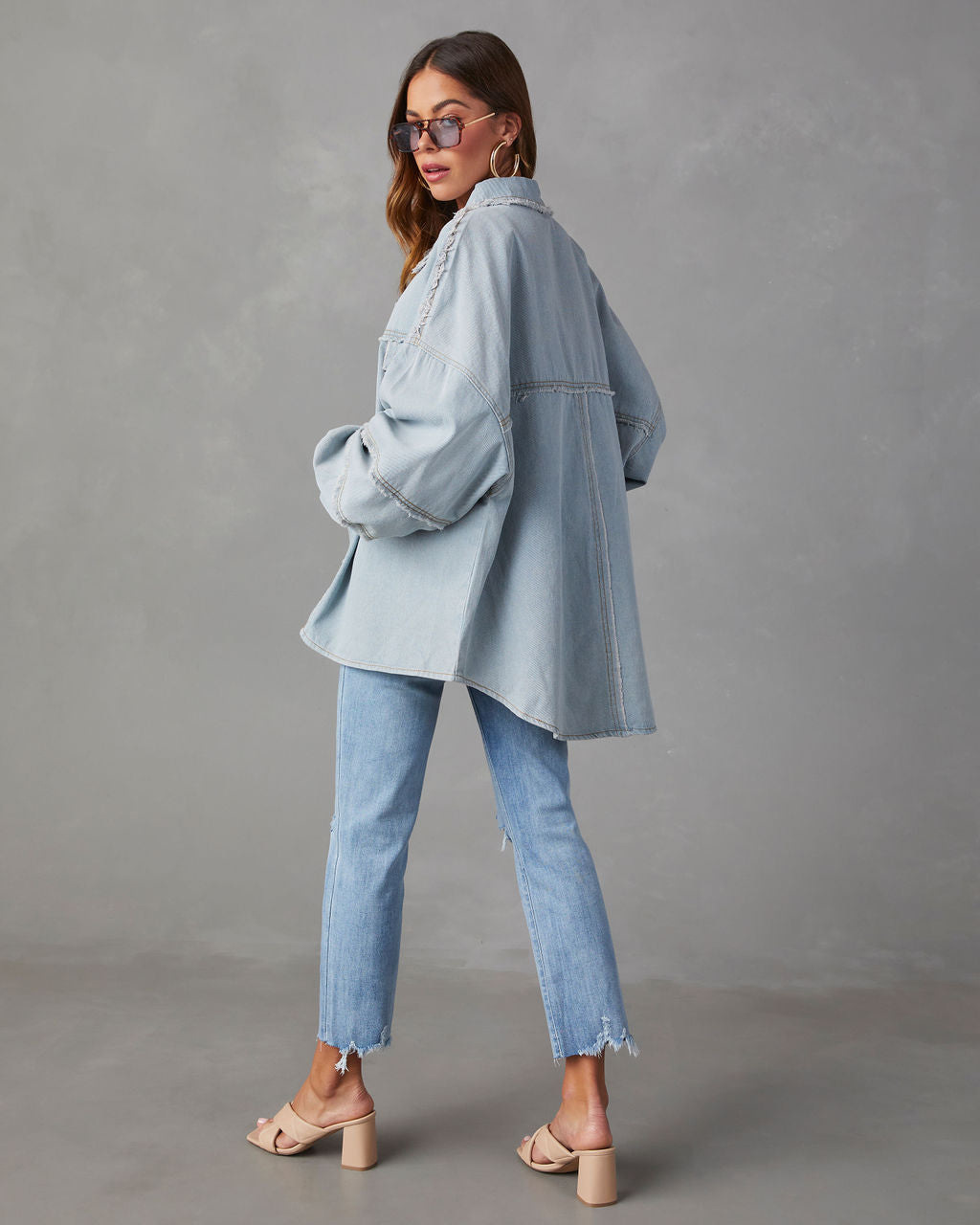 Casual Denim Jacket Washed Solid Color Mid Length Jacket