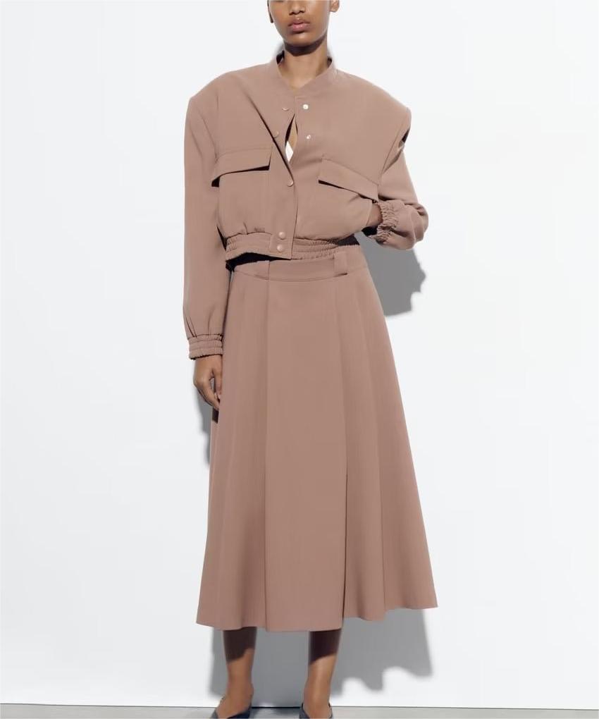 Casual Flight Jacket High Waist Skirt Setable Suit