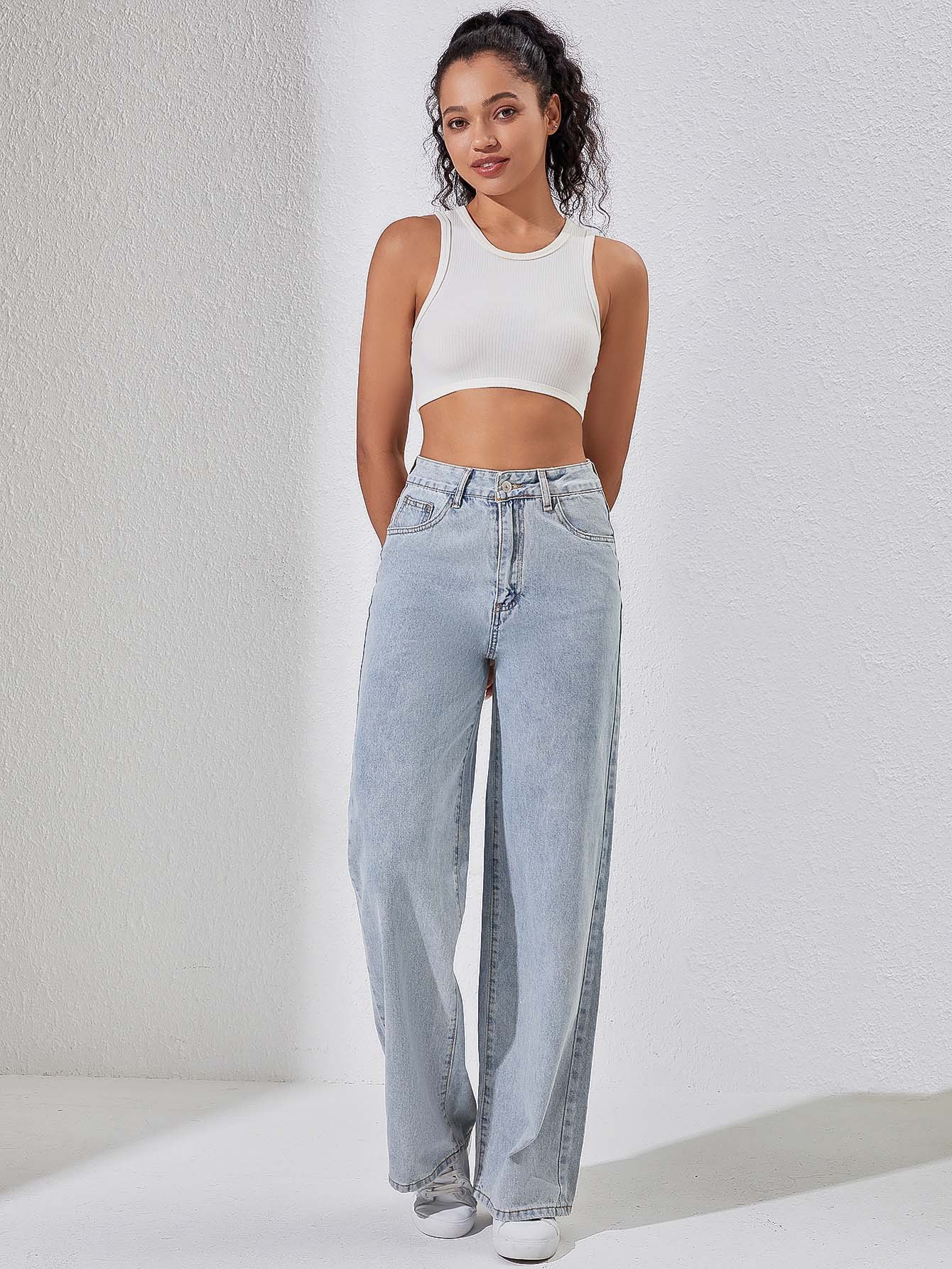 Casual Jeans Loose High Waist Wide Leg Trousers Street Denim Source