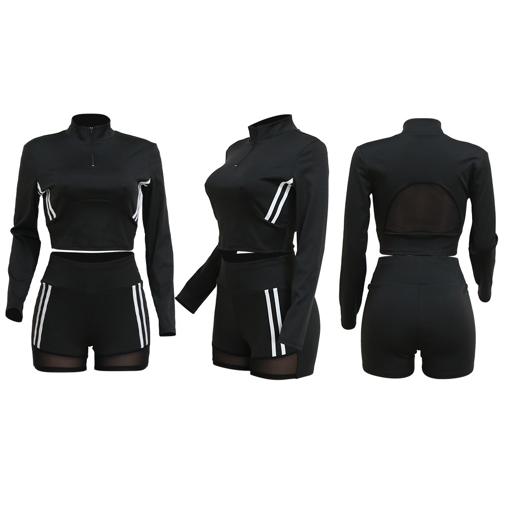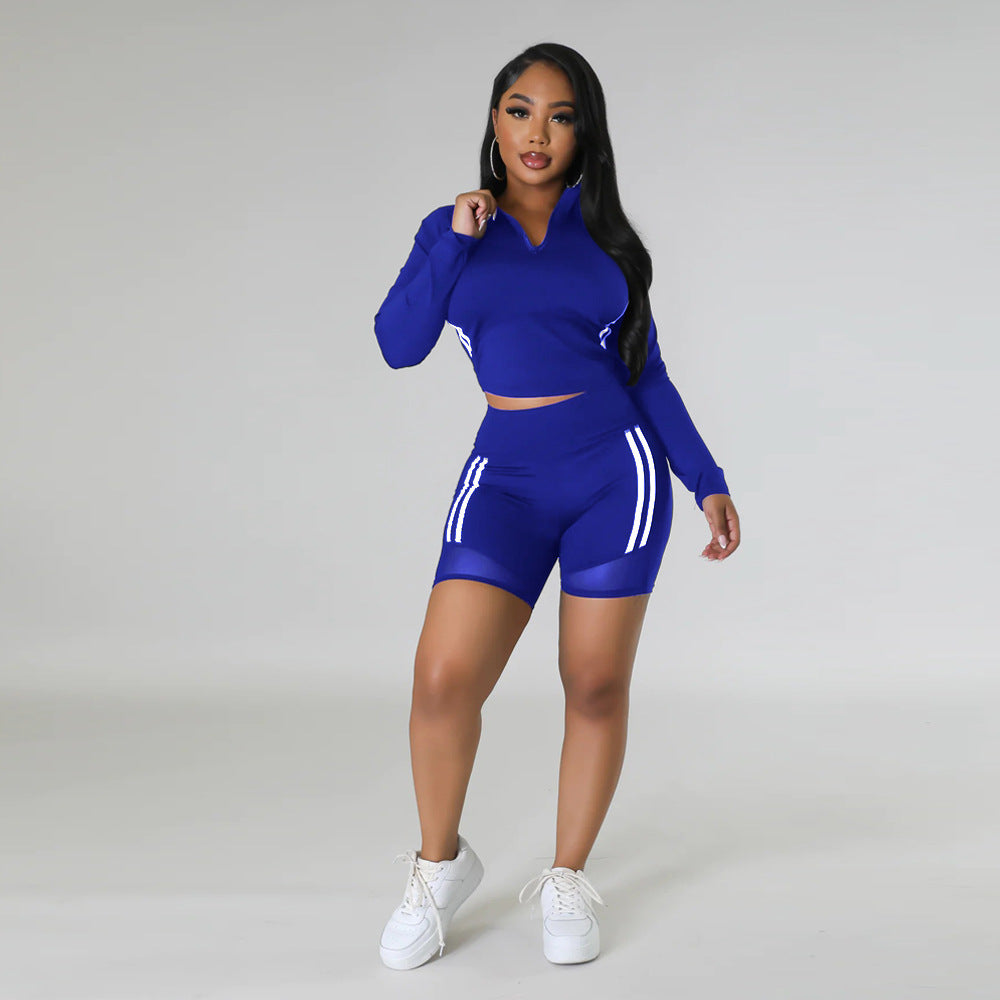 Casual Long Sleeved Topable Bum Lift Shorts Casual Suit
