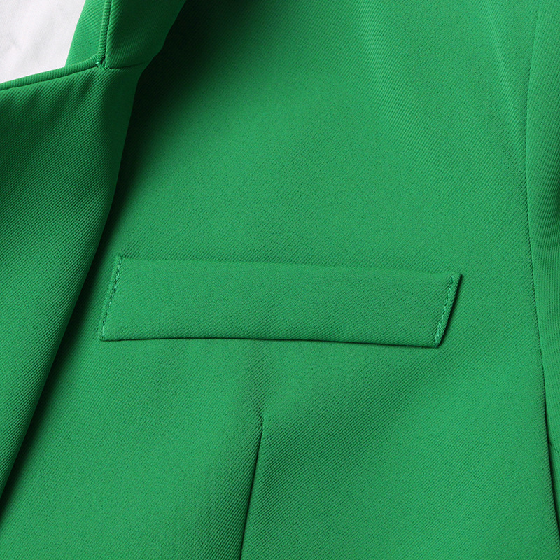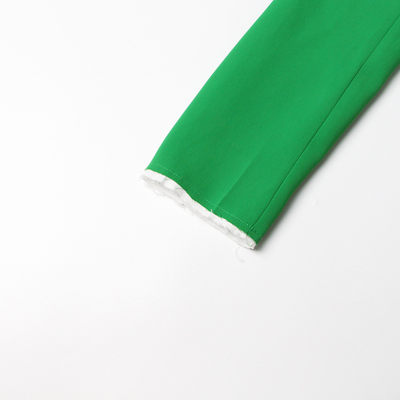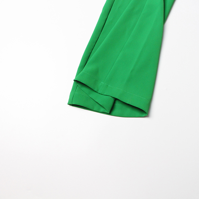 Casual Short Blazer Flanging High Waist Straight Pants Suit Two Piece Set