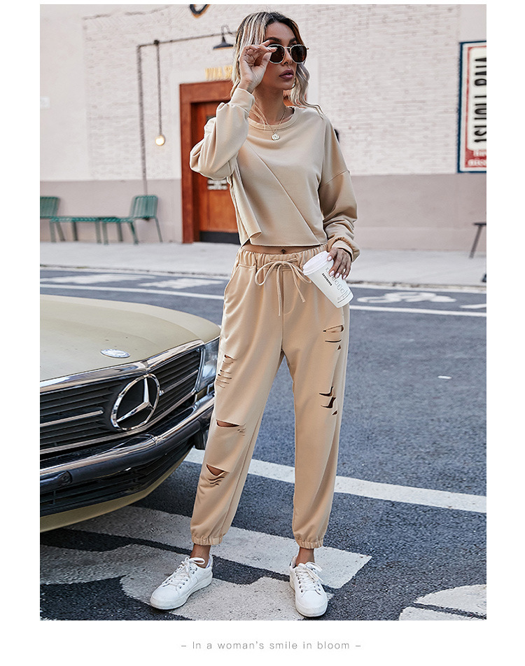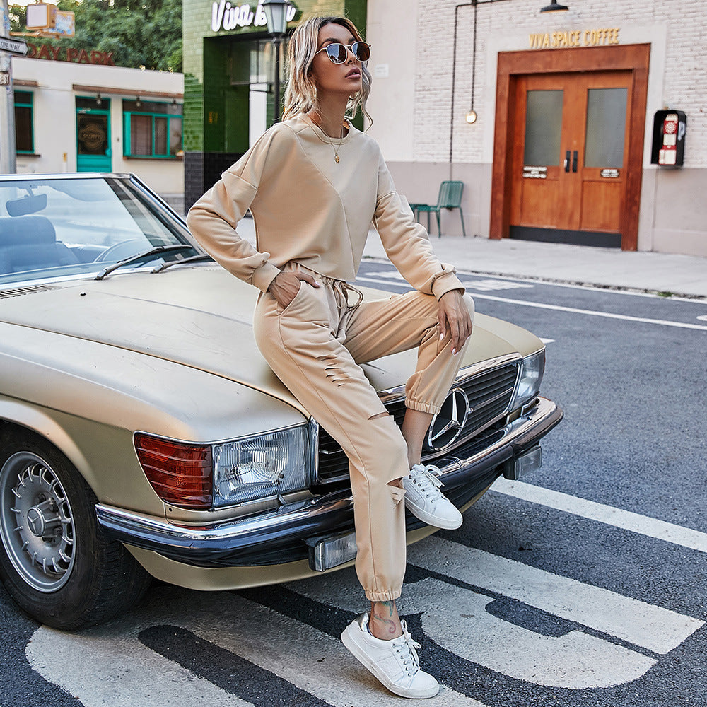 Casual two piece set Loose Hole Sports Sweater Suit