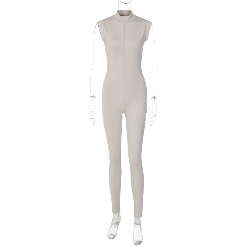 Chest Zipper Tight Fitting Solid Color Jumpsuit