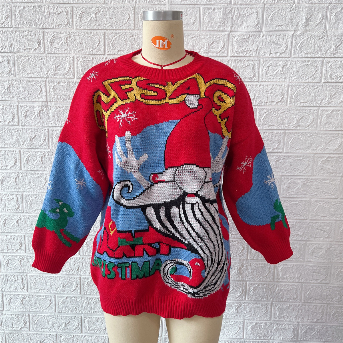 Christmas Sweater Santa Claus Pattern round Neck Thickened Knitted Pullover
