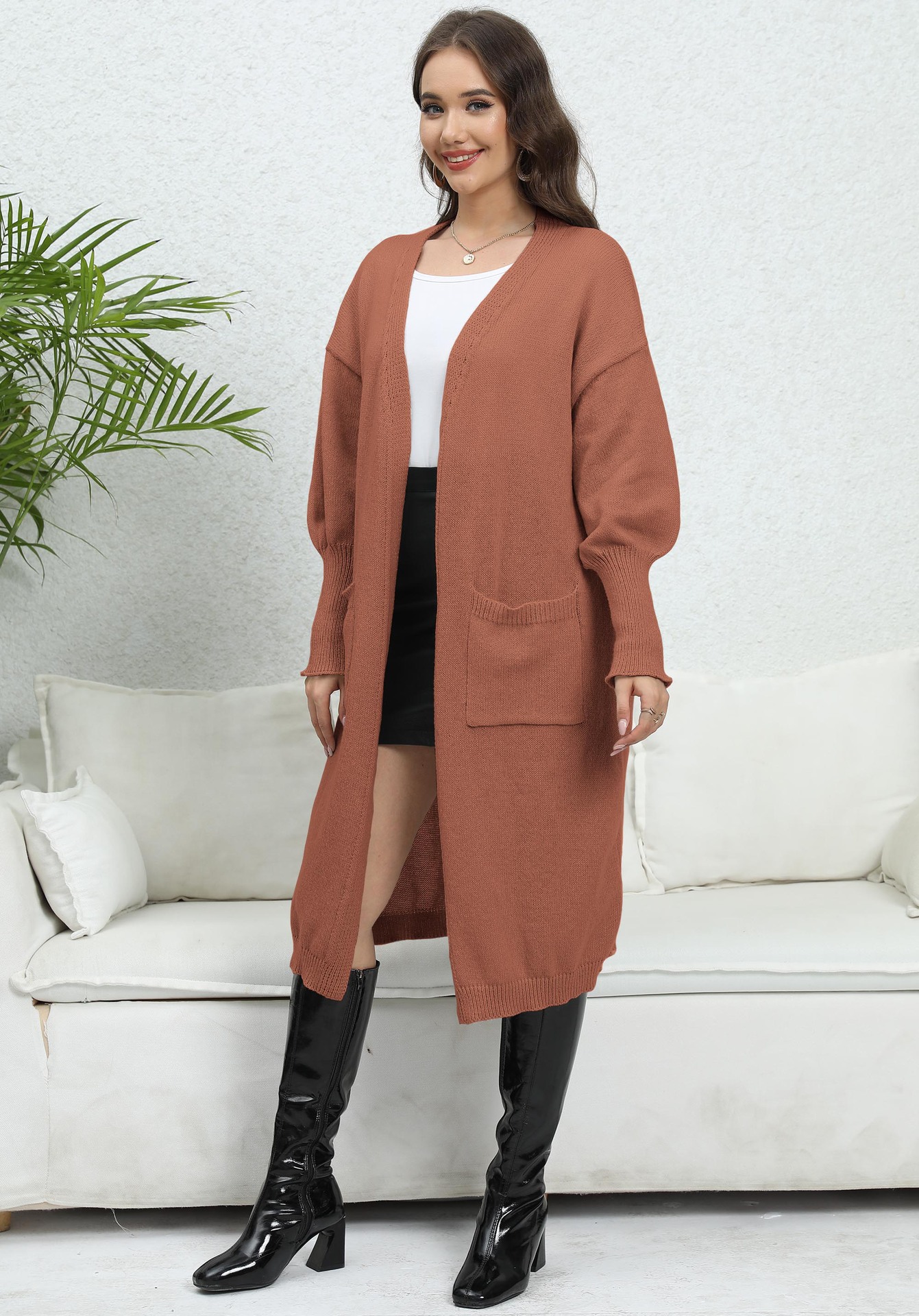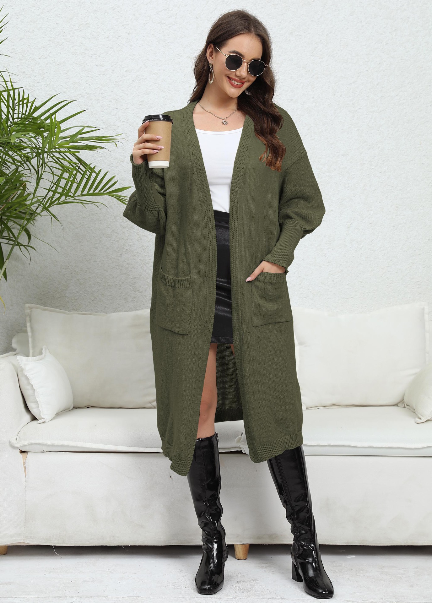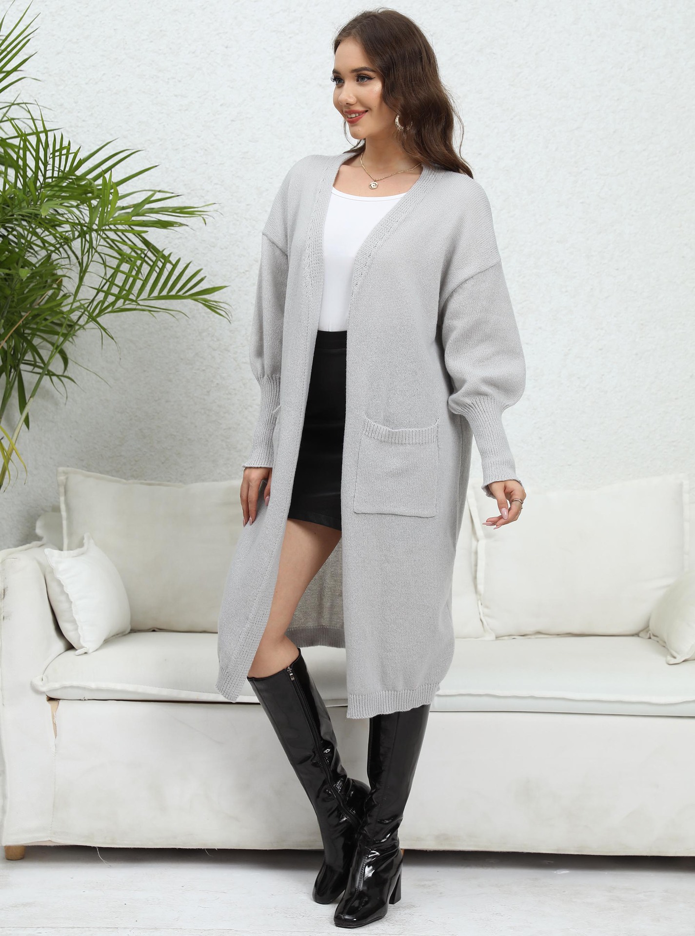 Coat Loose Idle Fan Woven Sweater Double Pocket Lantern Sleeve Sweater Cardigan