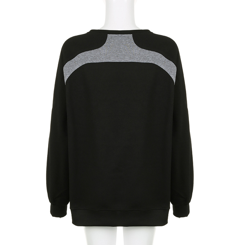 College Contrast Color Budding Stitching Loose Long Sleeve Crew Neck Sweater Casual Sports Top