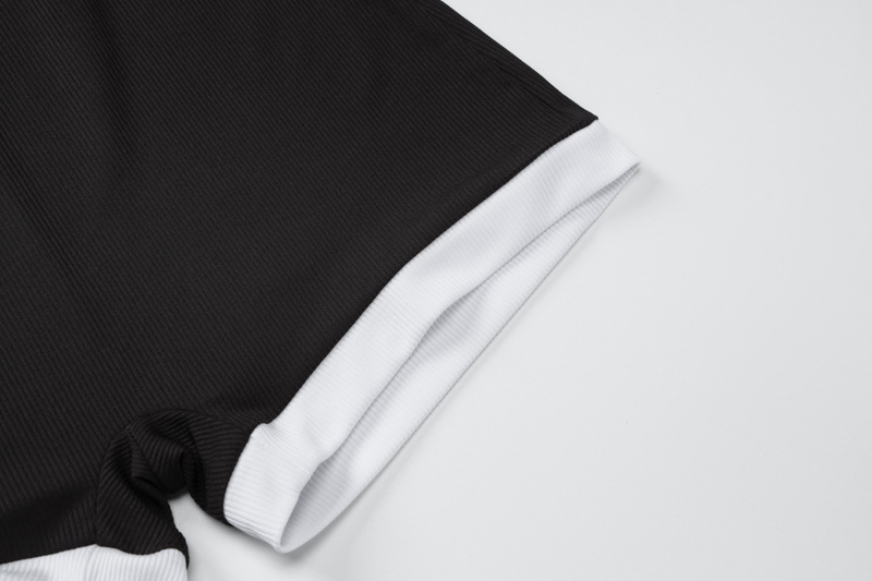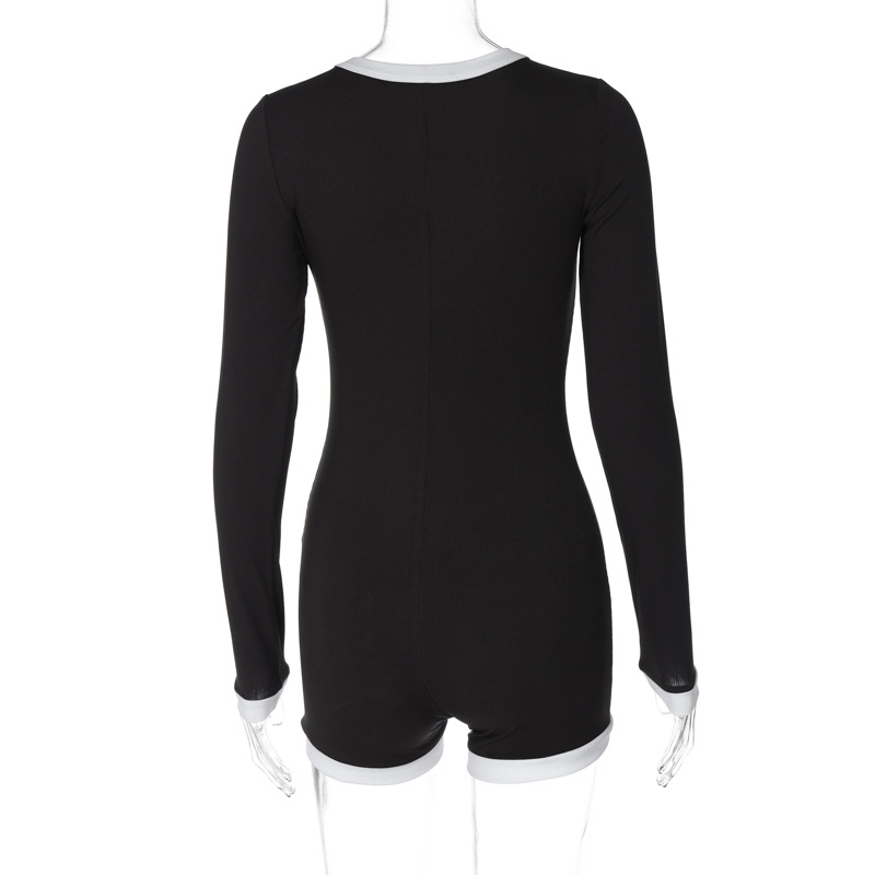 Color Contrast Patchwork Long Sleeve Jumpsuit round Neck Button Slim Shorts