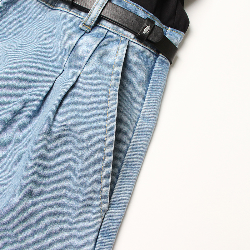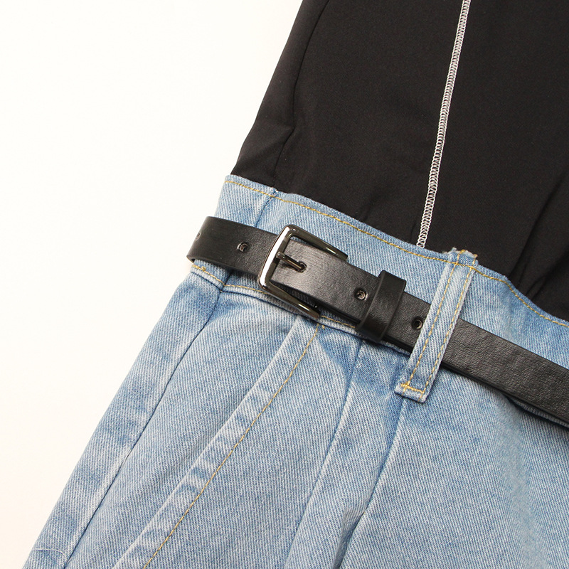 Color Contrast Stitching Denim Belt High Elasticity Slimming Flab Hiding Casual Pants Trousers