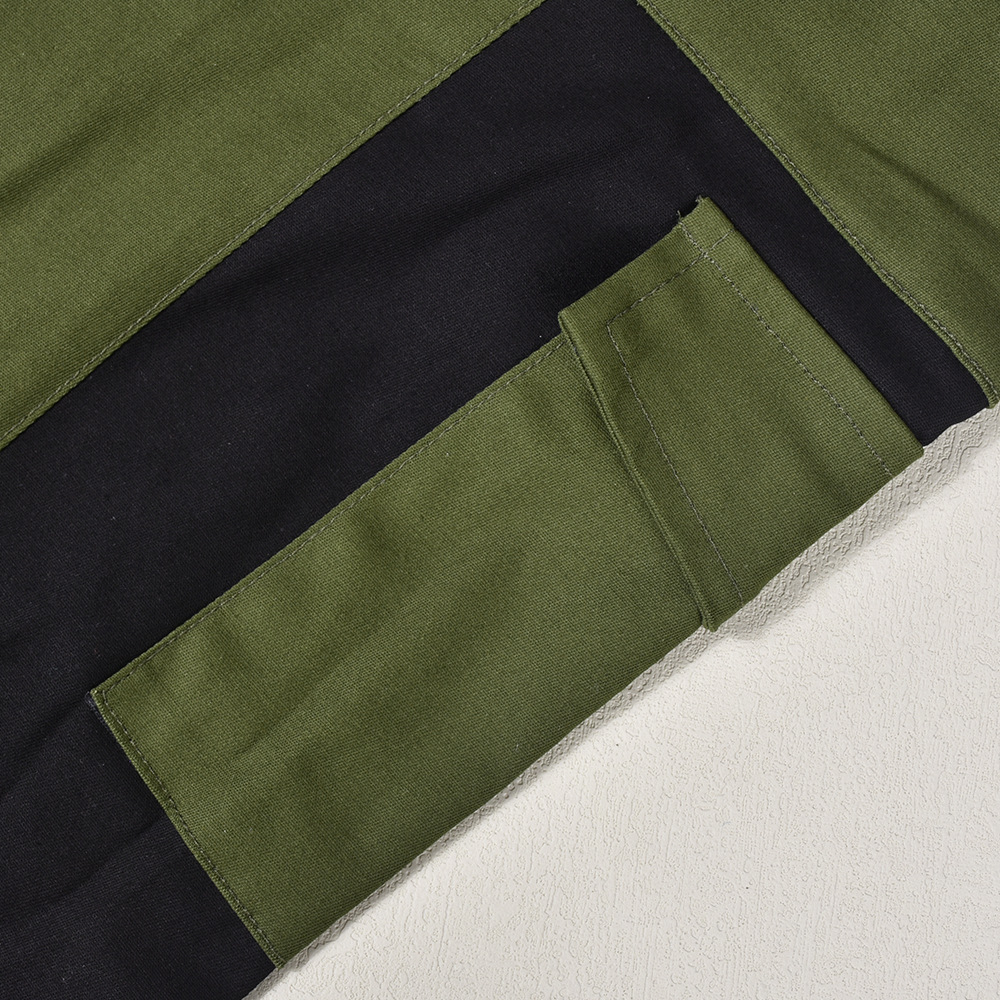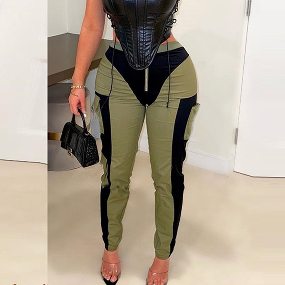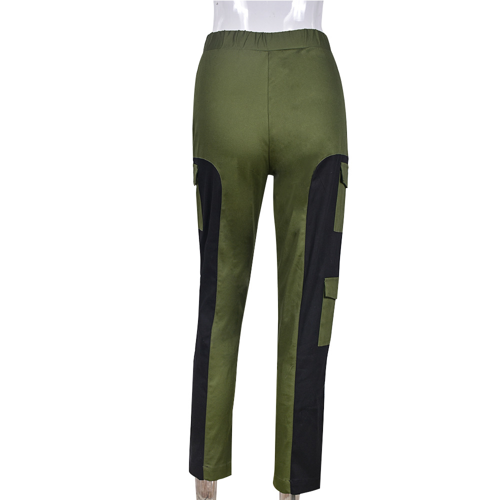 Contrast Color Multi Pocket Casual Zipper Elastic Waist Pants