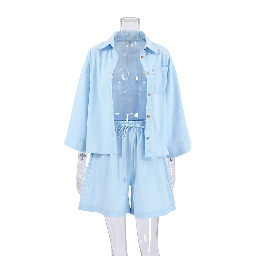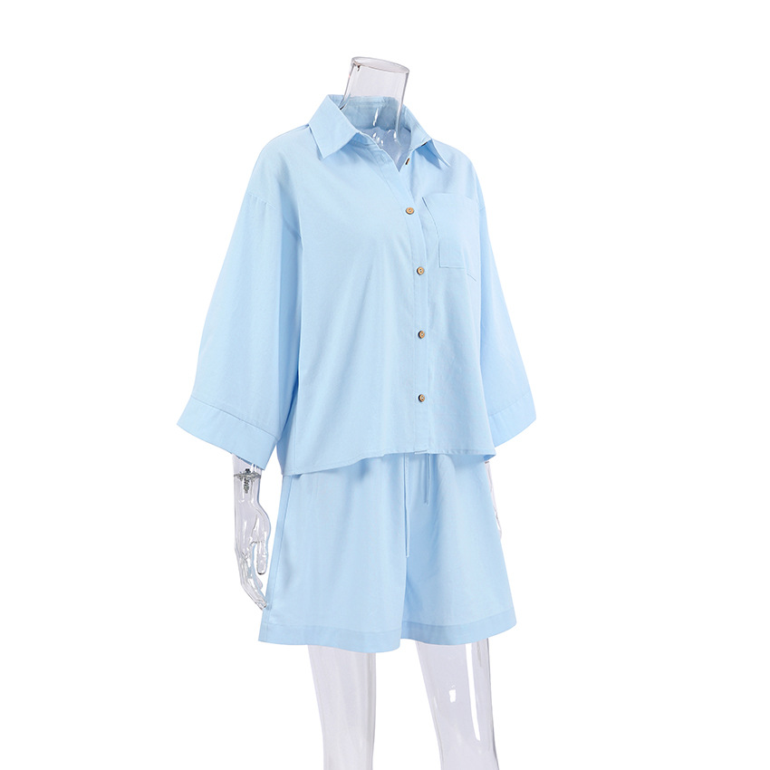 Cotton Long Sleeve Shorts Pajamas Casual Loose Nightgown Worn outside Homewear