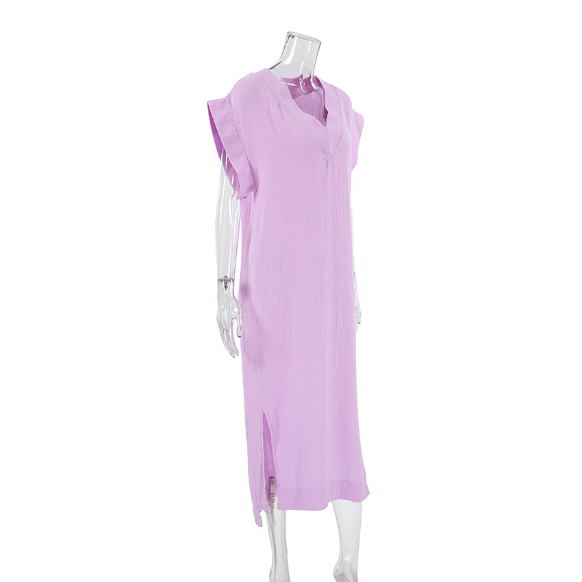 Cotton Sleeveless Nightdress Casual Outdoor Split One Piece Pajamas Home Nightgown