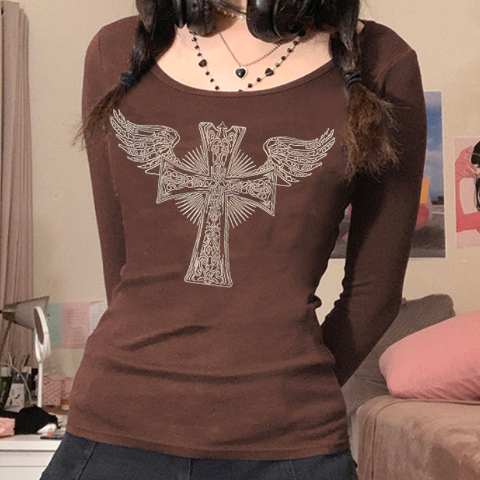 Crew Neck Long Sleeved T shirt Halloween Printed Tight Top