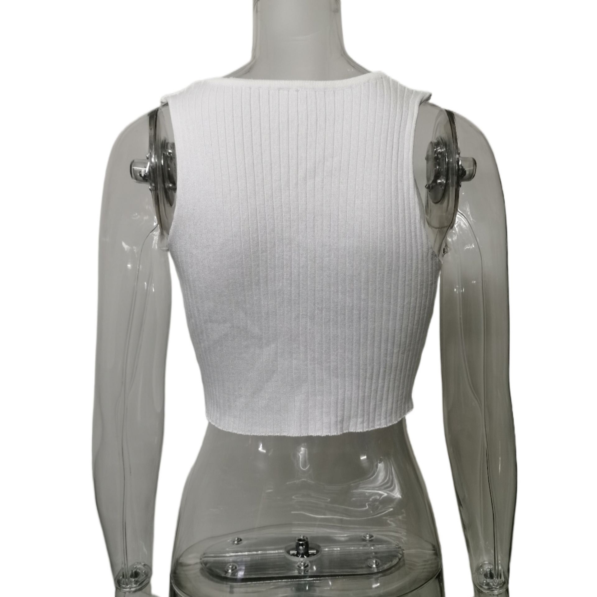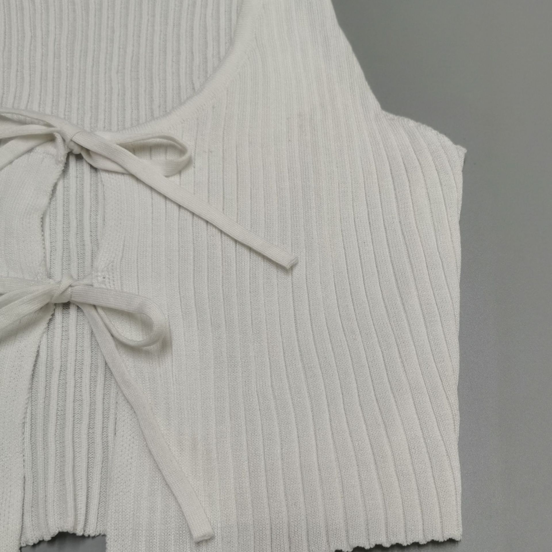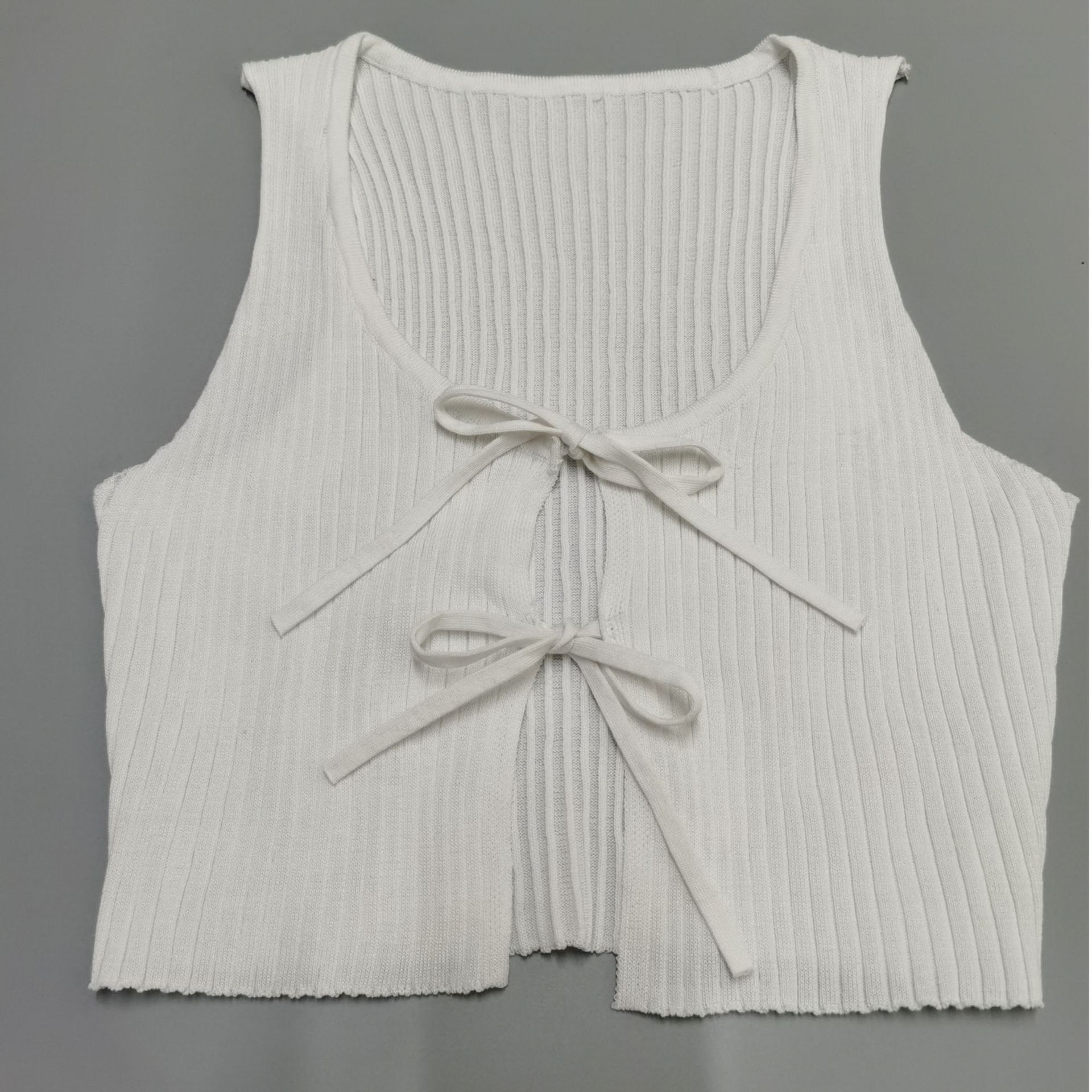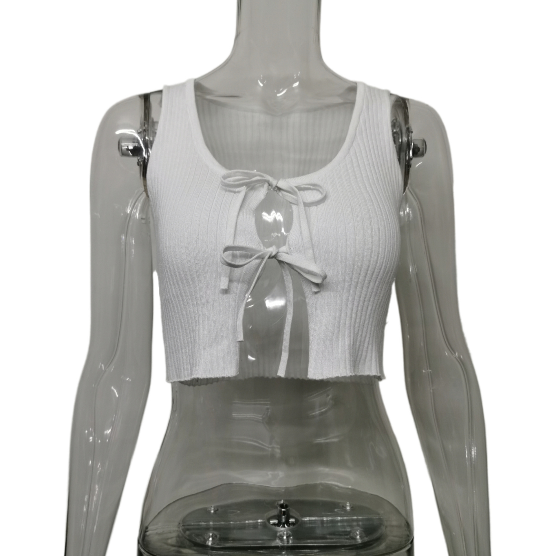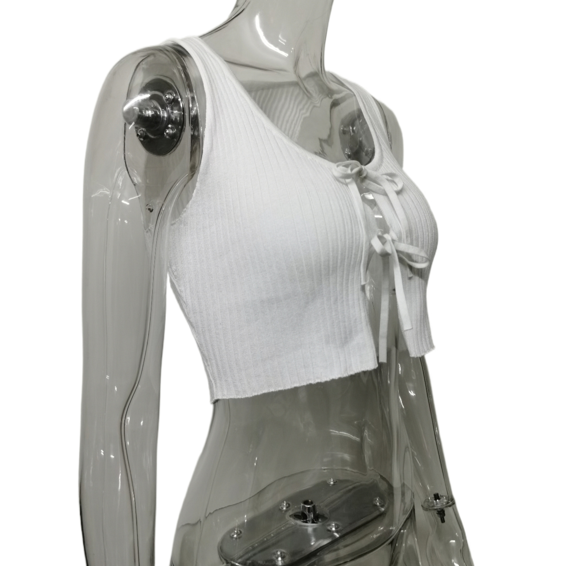 Cropped Vest Knitted Sunken Stripe Solid Color Lace up Top